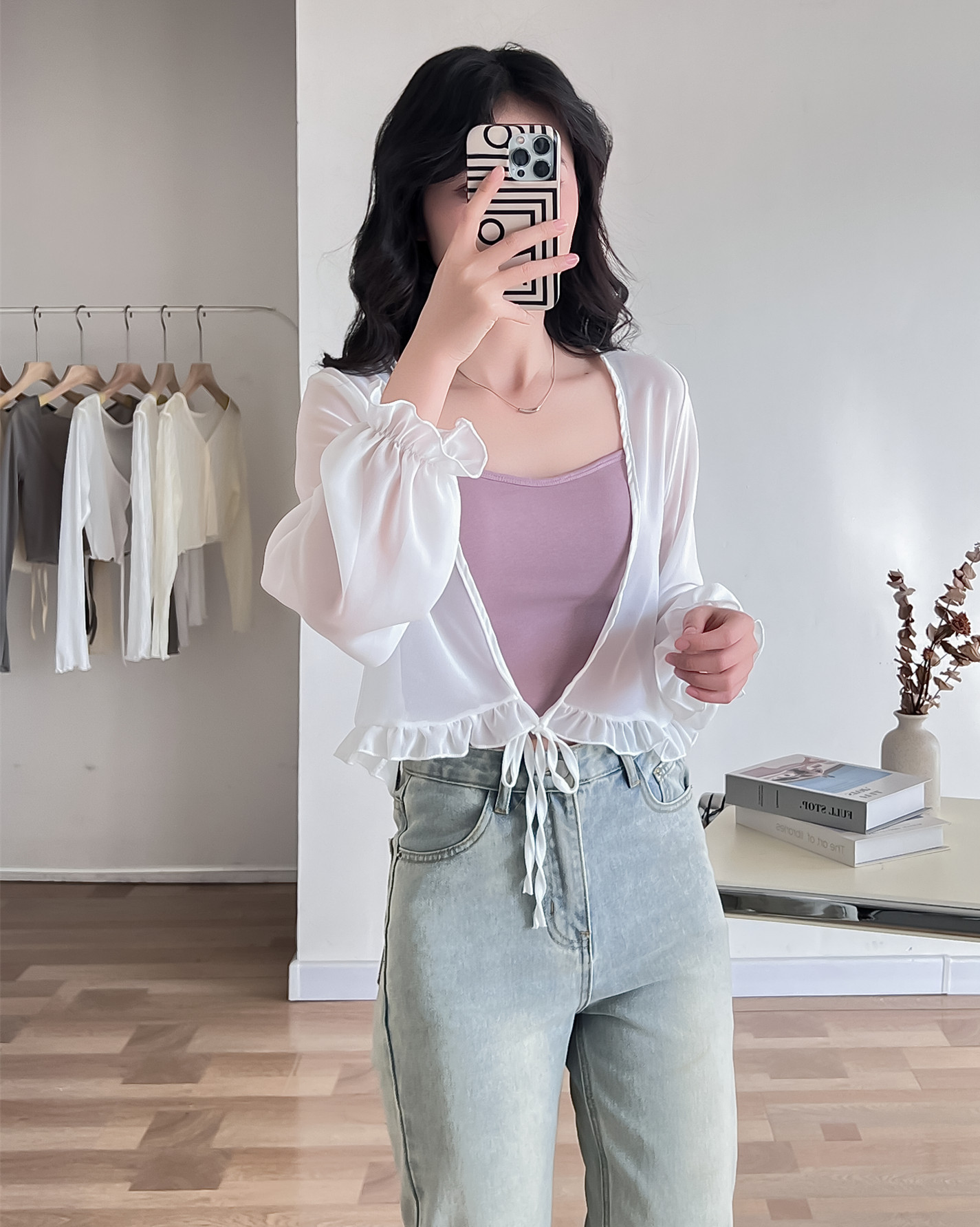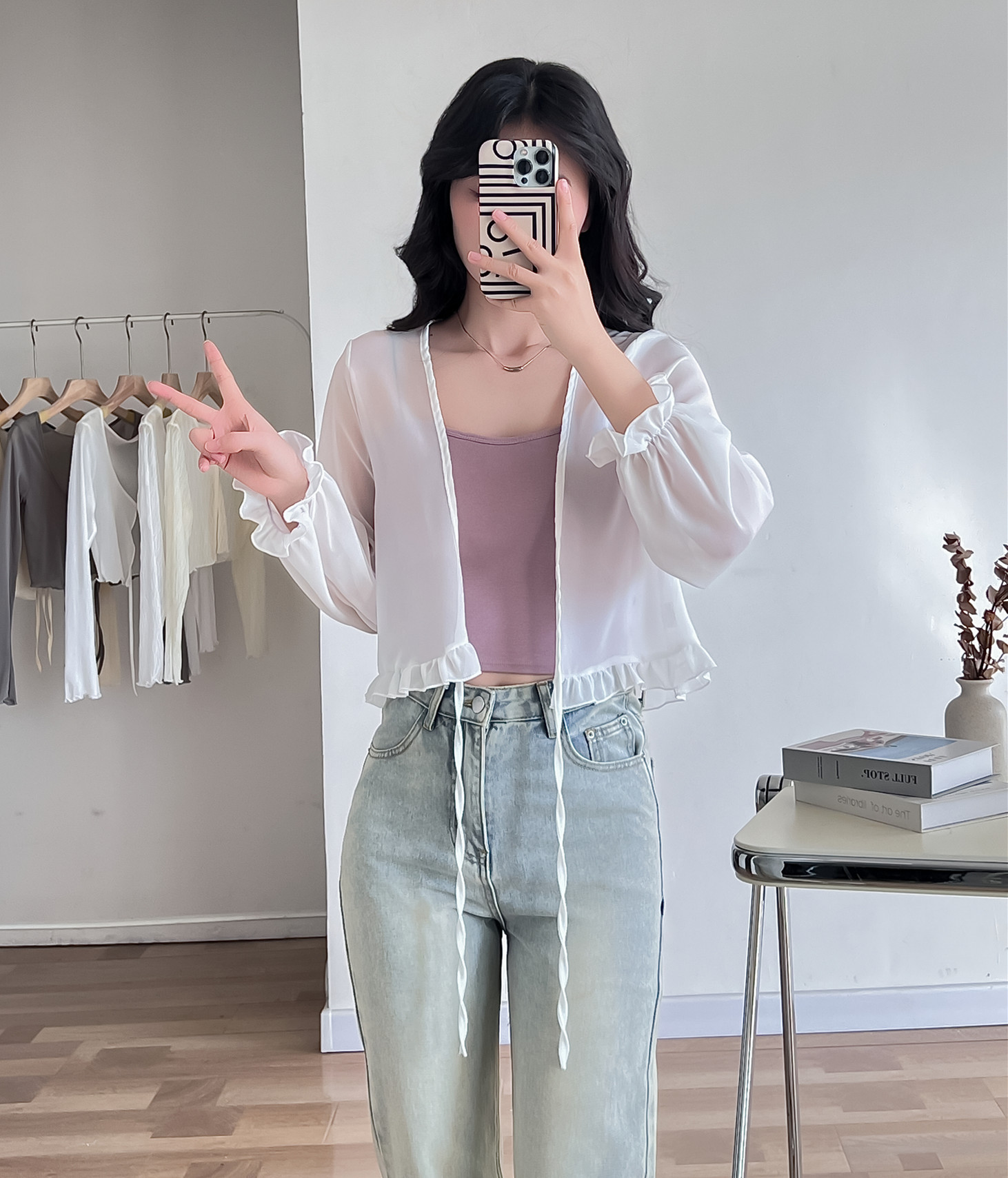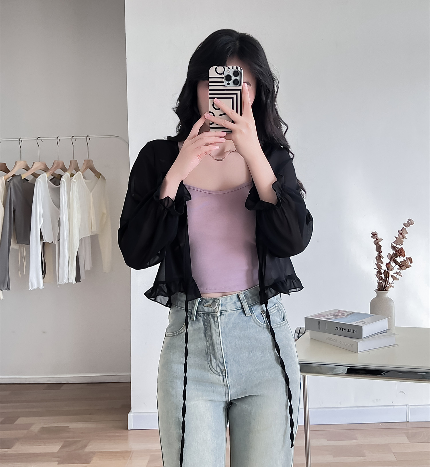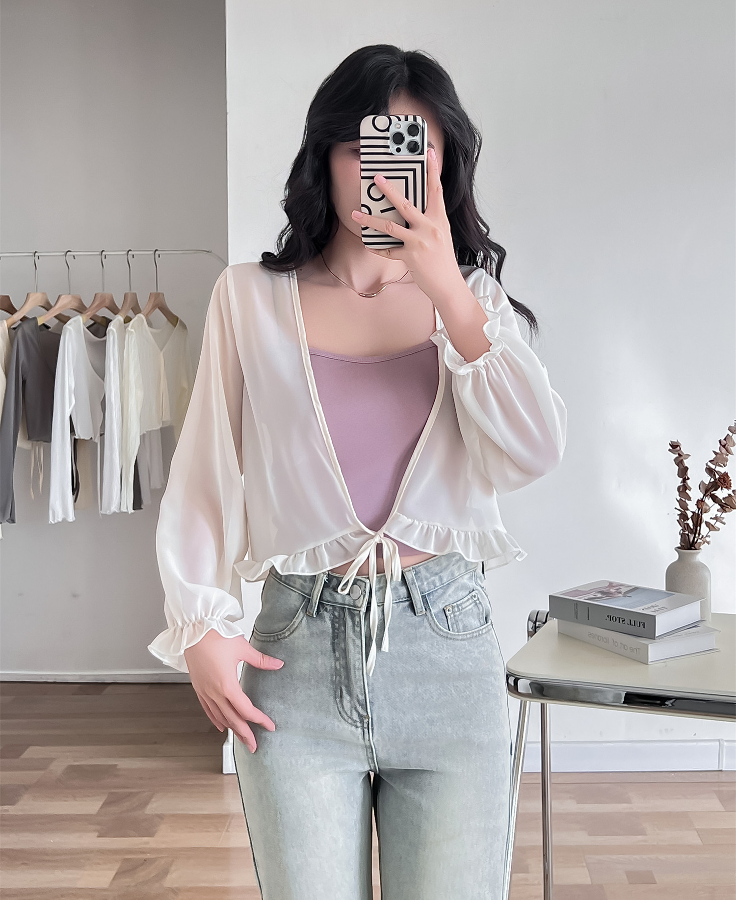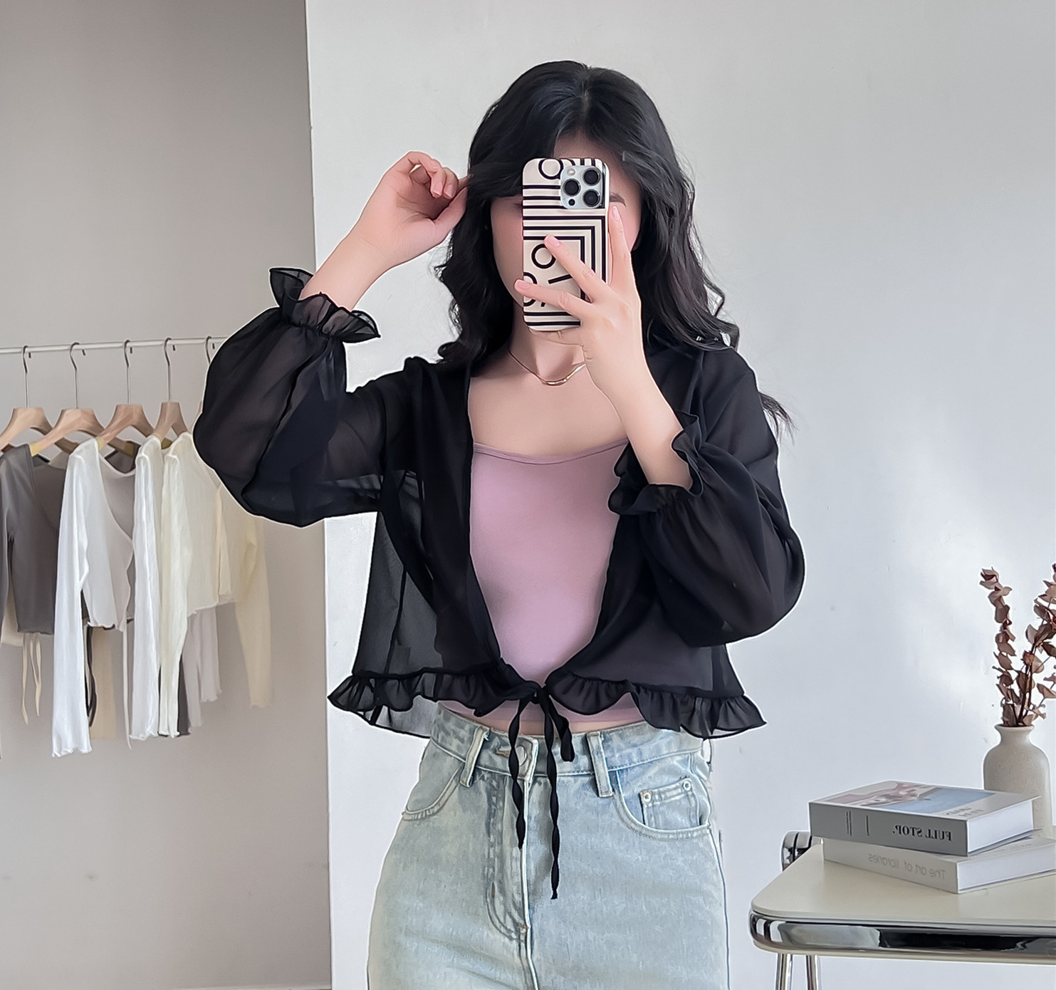 슬링 스커트와 시폰 셔츠 작은 목도리 얇은 코트 카디건 선스크린 최고 여성의 2025 새로운 여름 의상