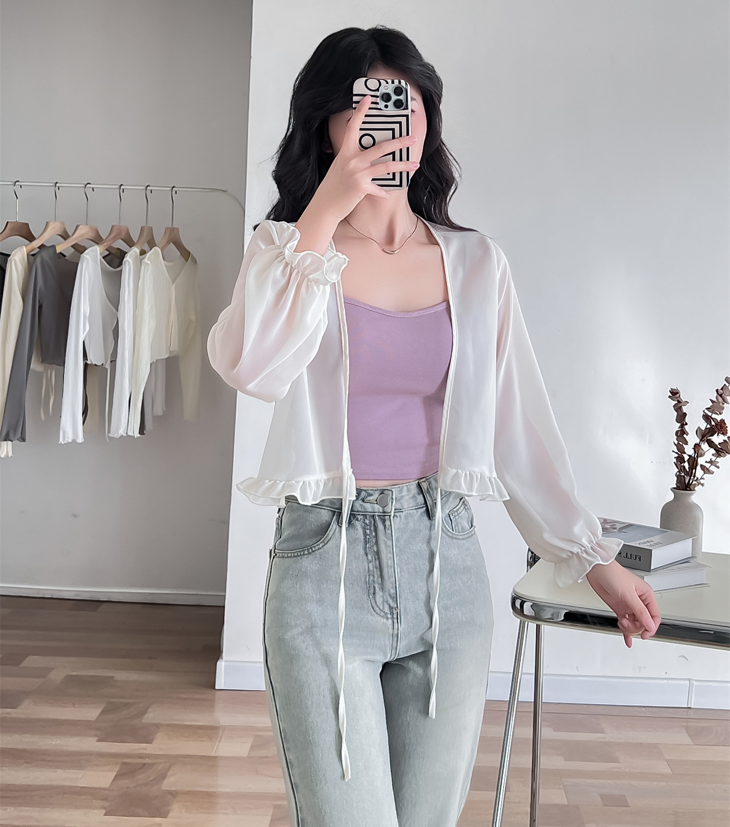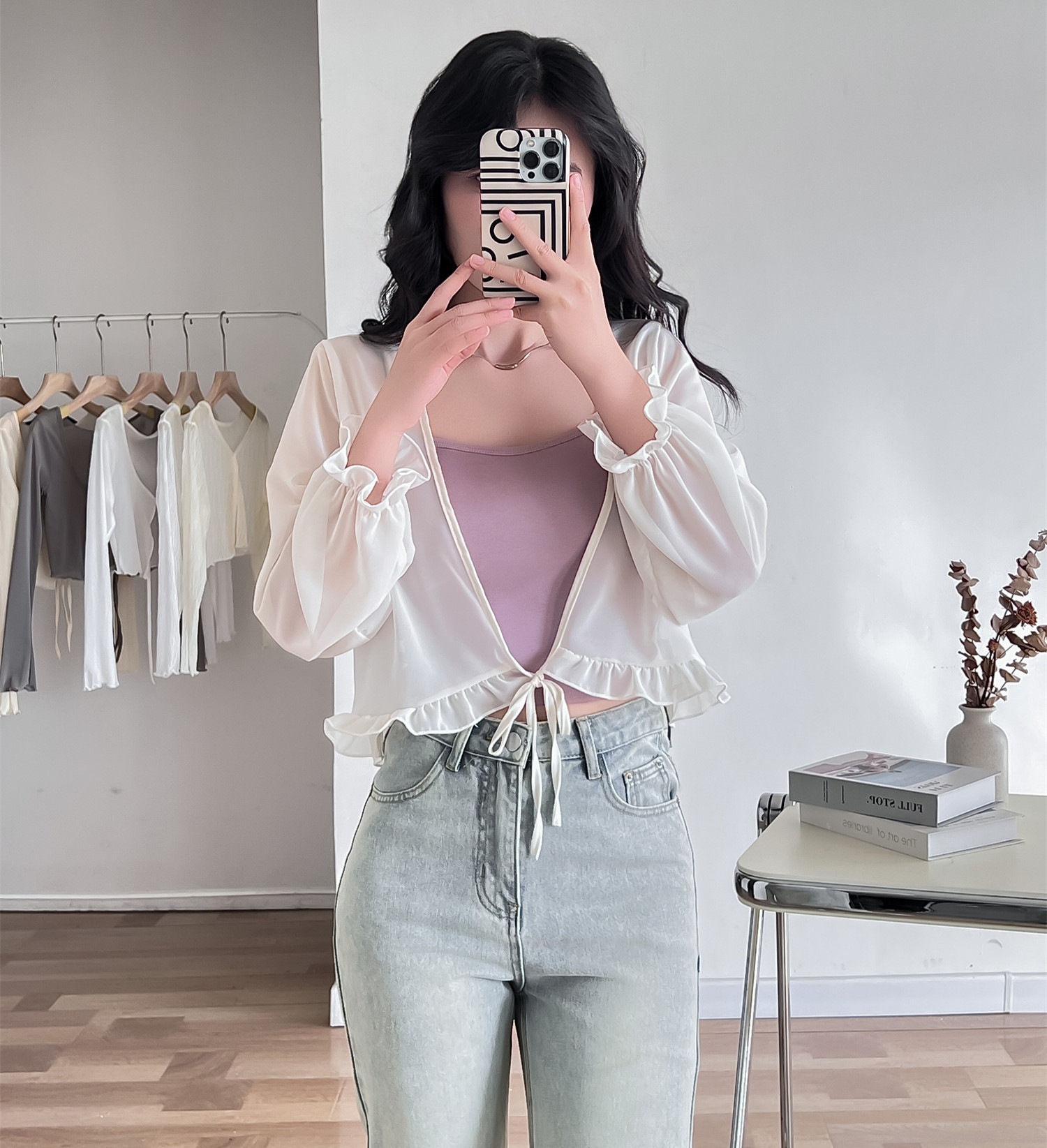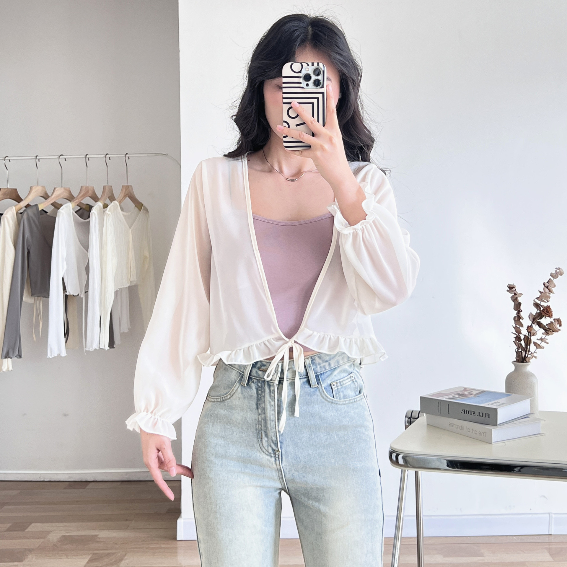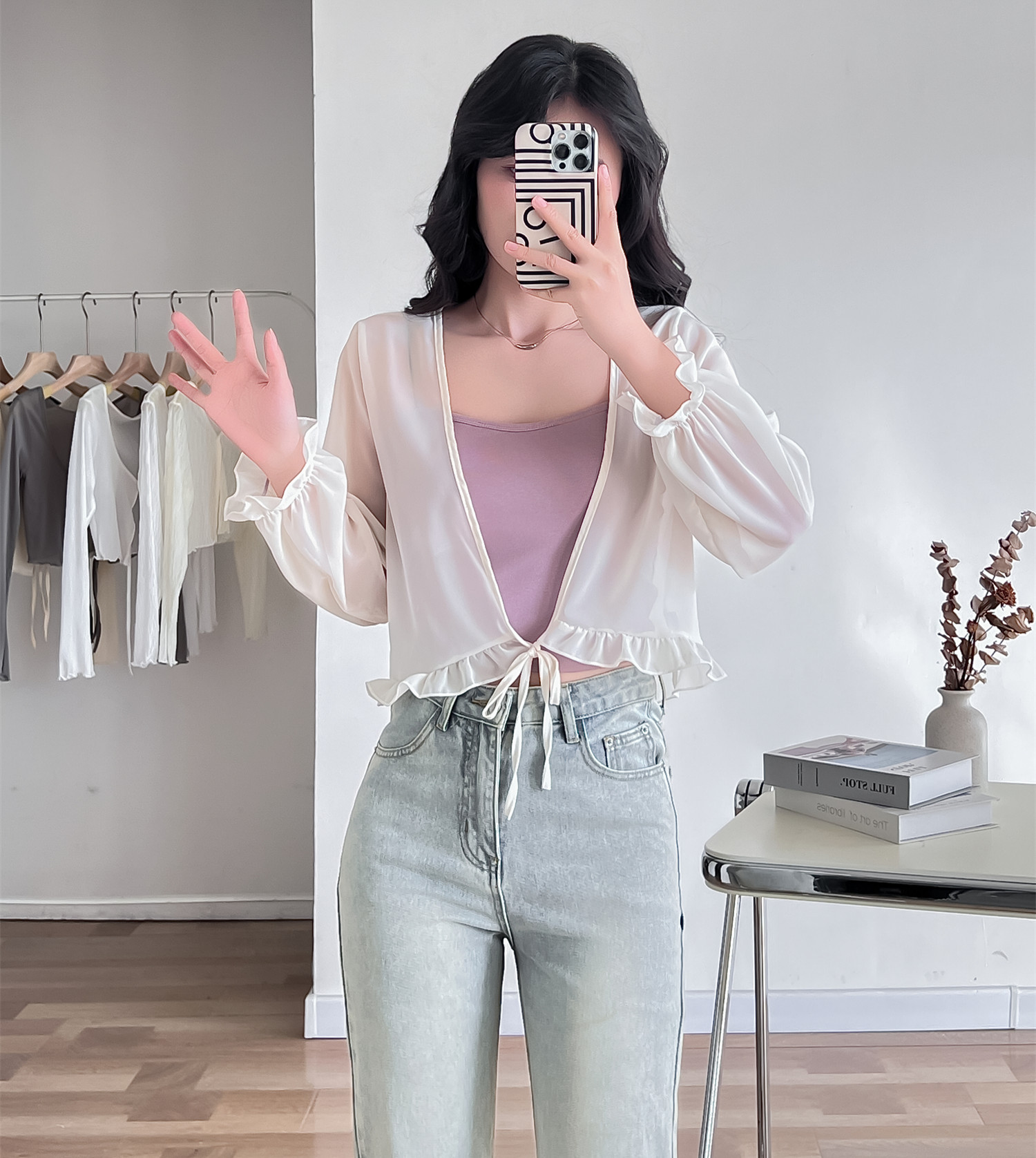 슬링 스커트와 시폰 셔츠 작은 목도리 얇은 코트 카디건 선스크린 최고 여성의 2025 새로운 여름 의상스토어 가기