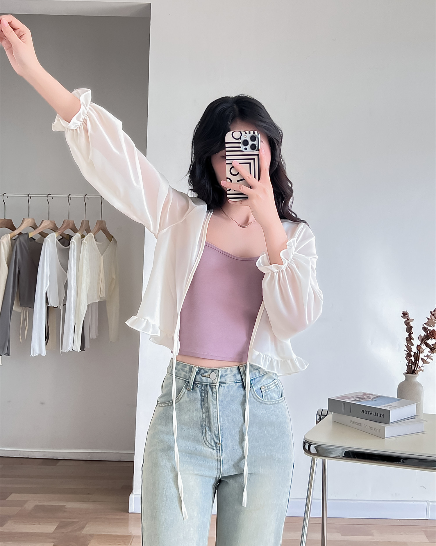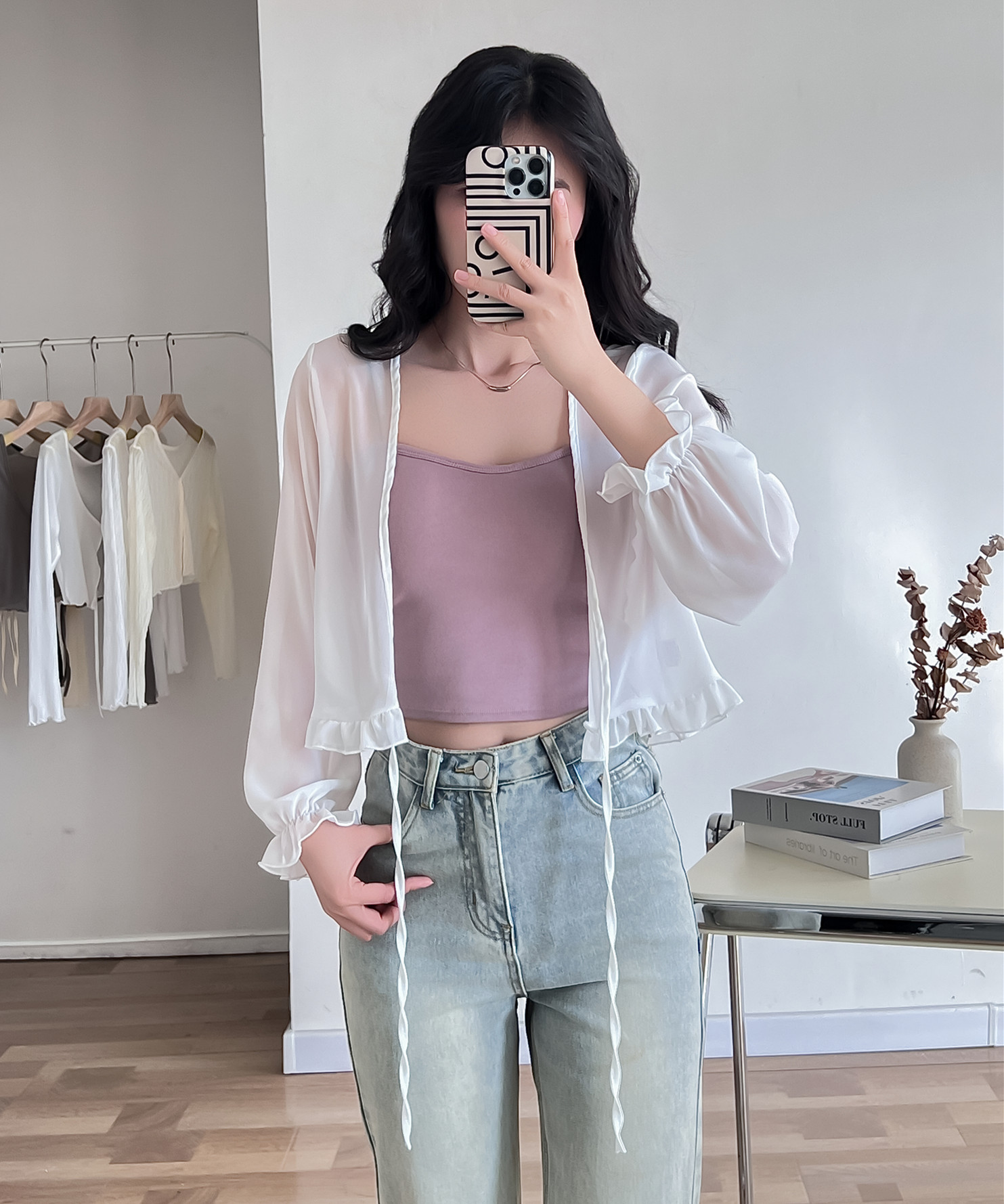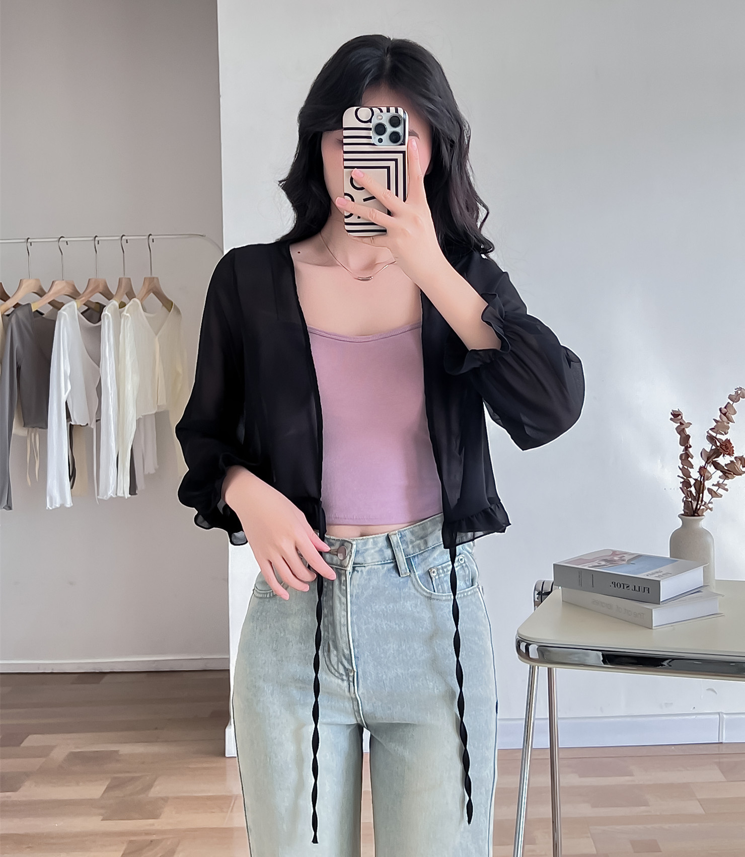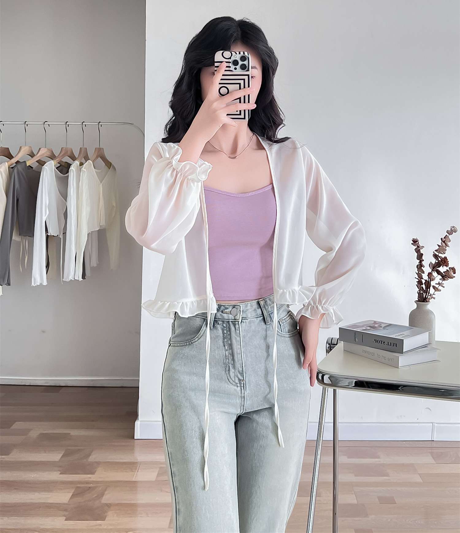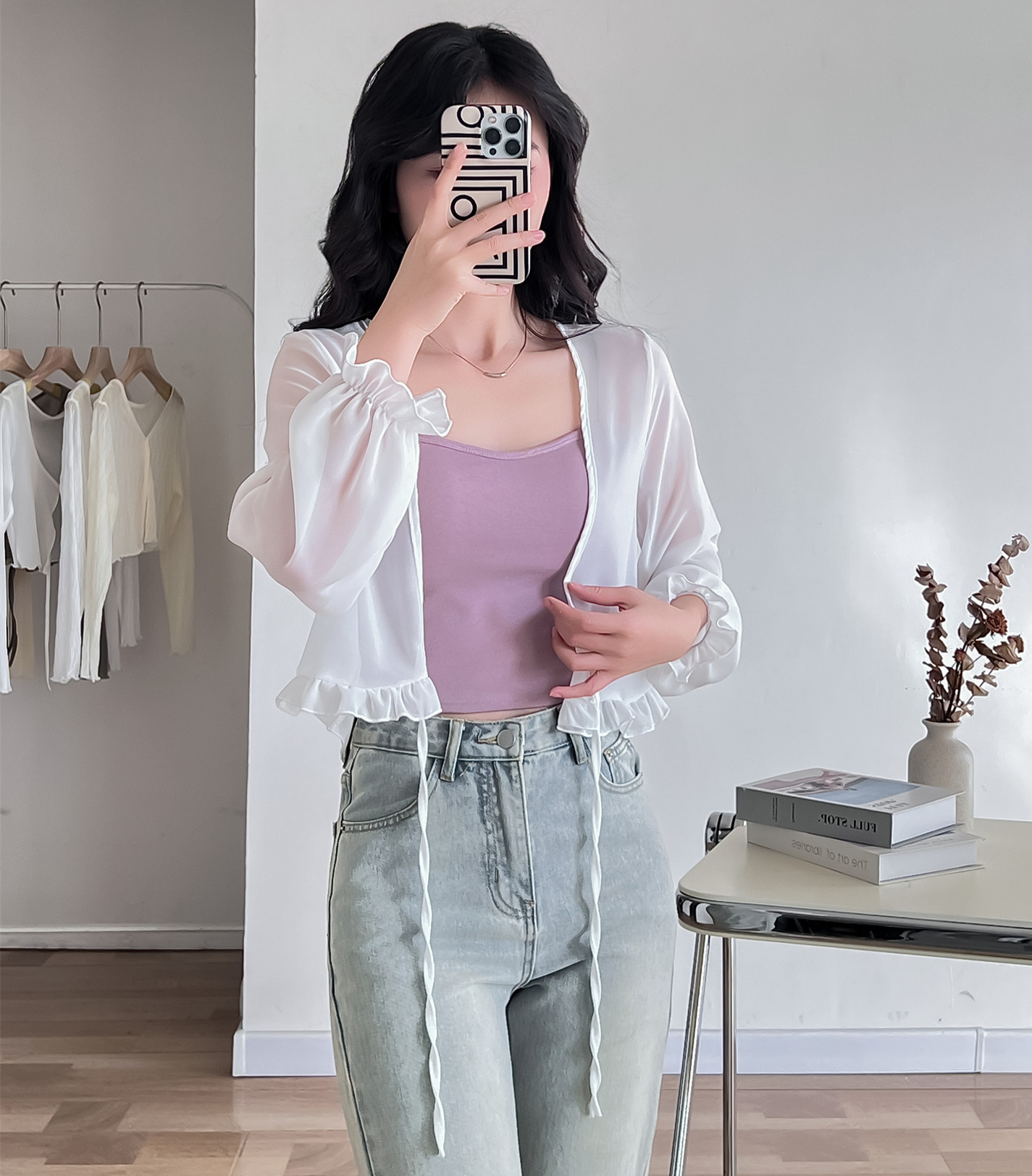 슬링 스커트와 시폰 셔츠 작은 목도리 얇은 코트 카디건 선스크린 최고 여성의 2025 새로운 여름 의상스토어 가기