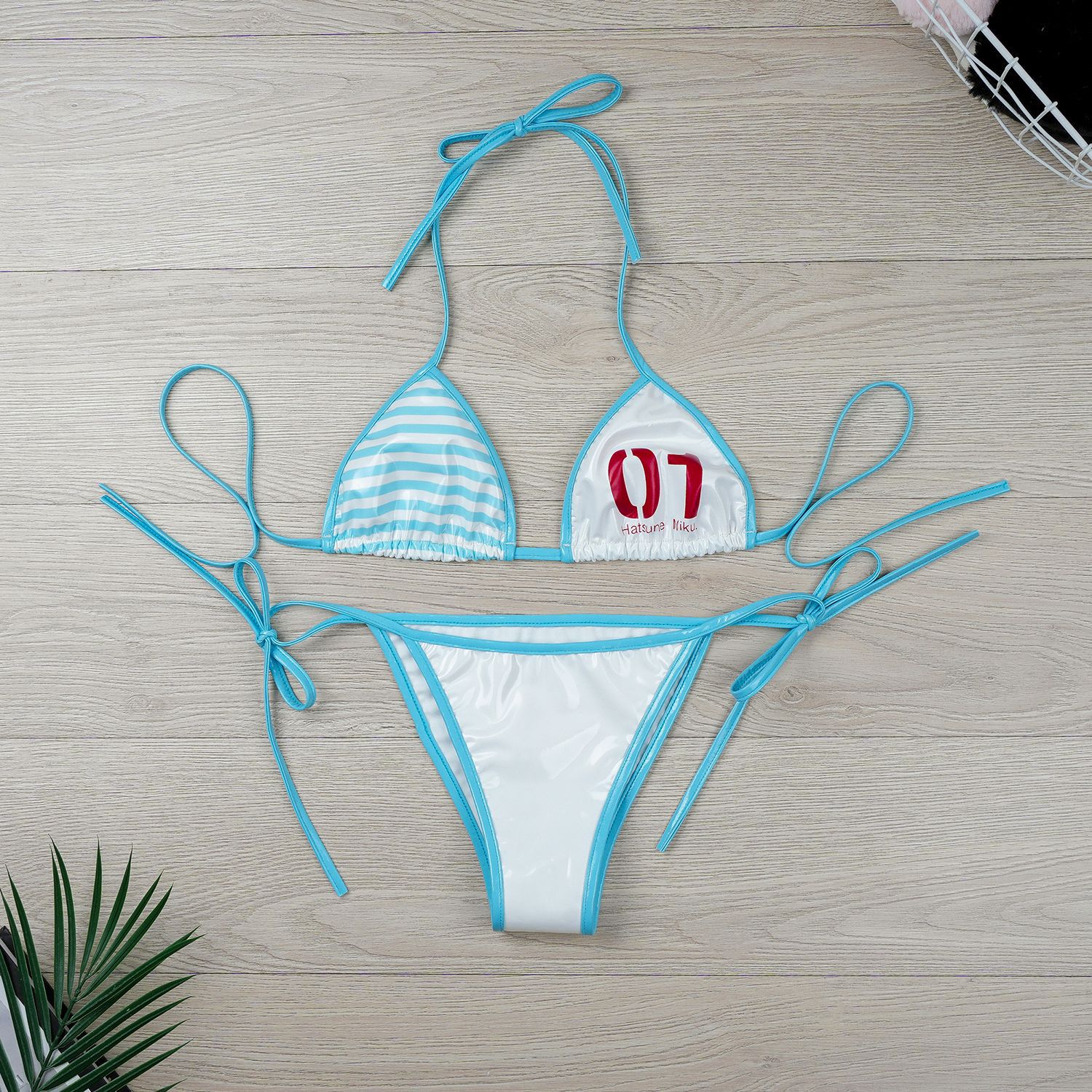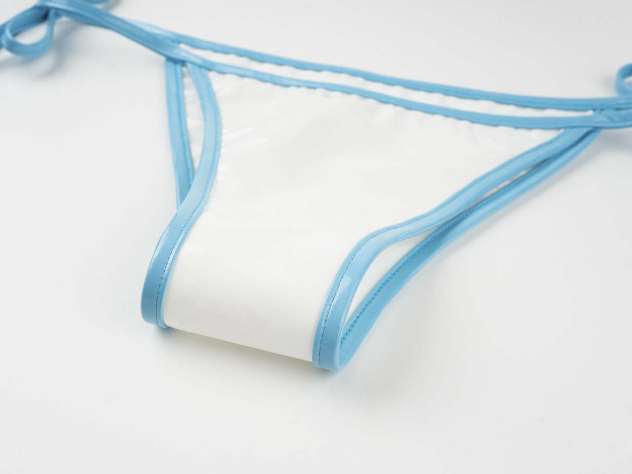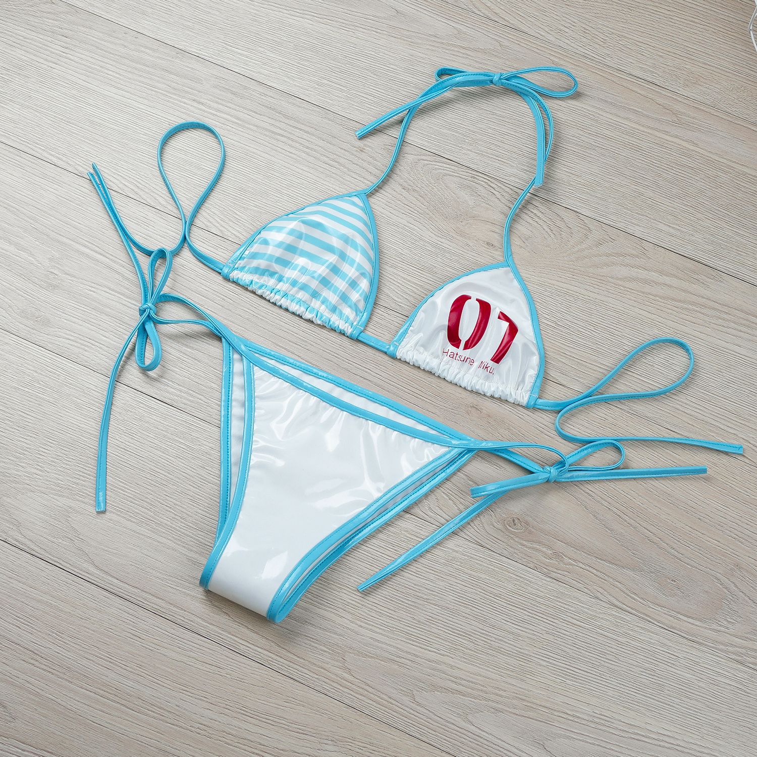 흥미로운 3 점 특허 가죽 비키니 2 차 롤 플레잉 초기 톤 파란색과 흰색 줄무늬 미니 속옷 134-C스토어 가기