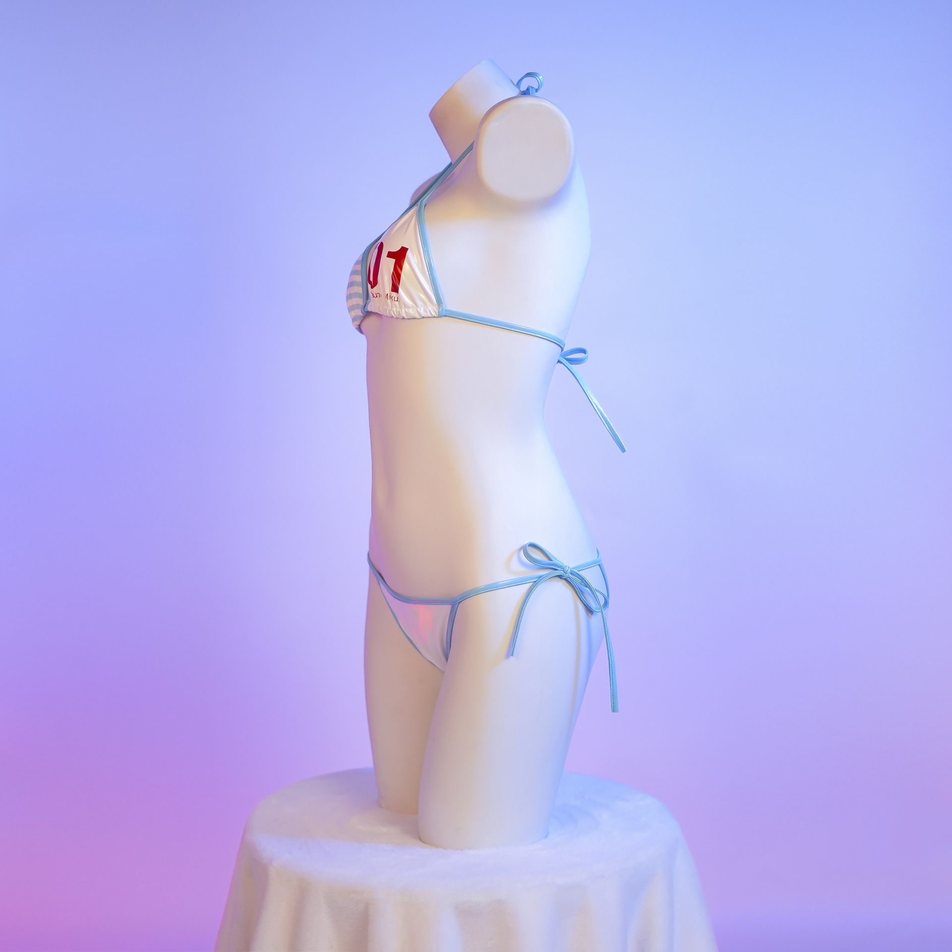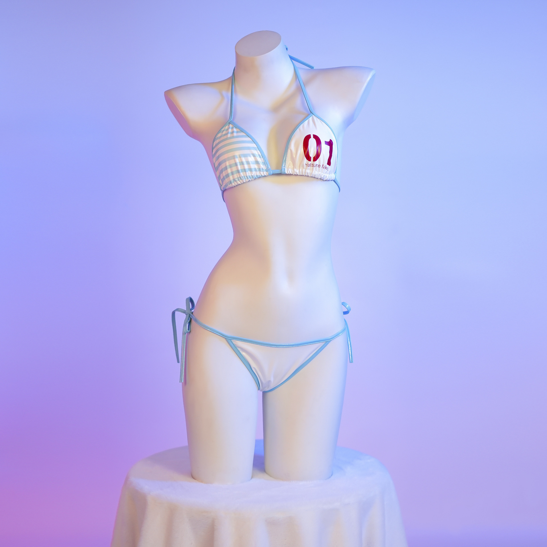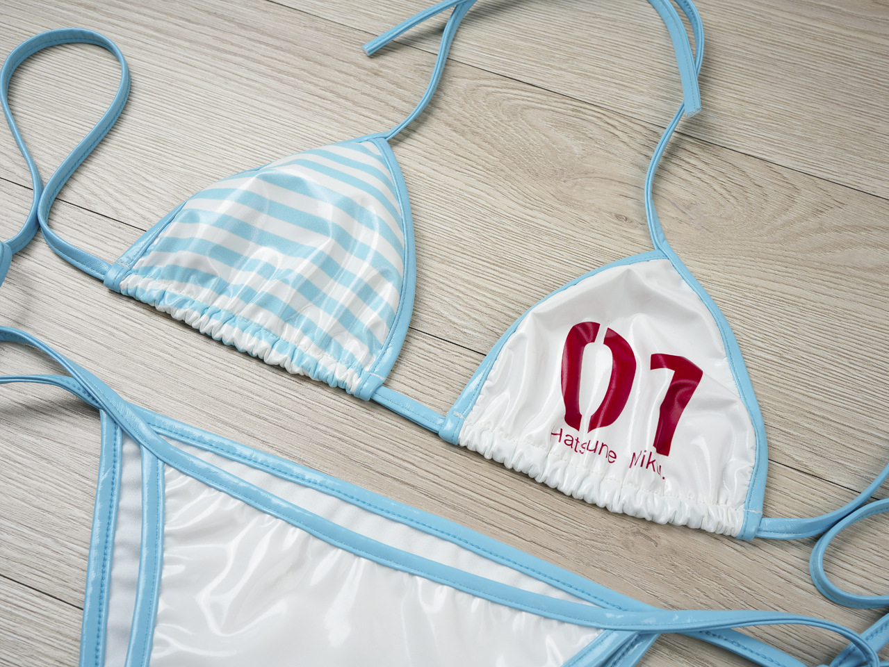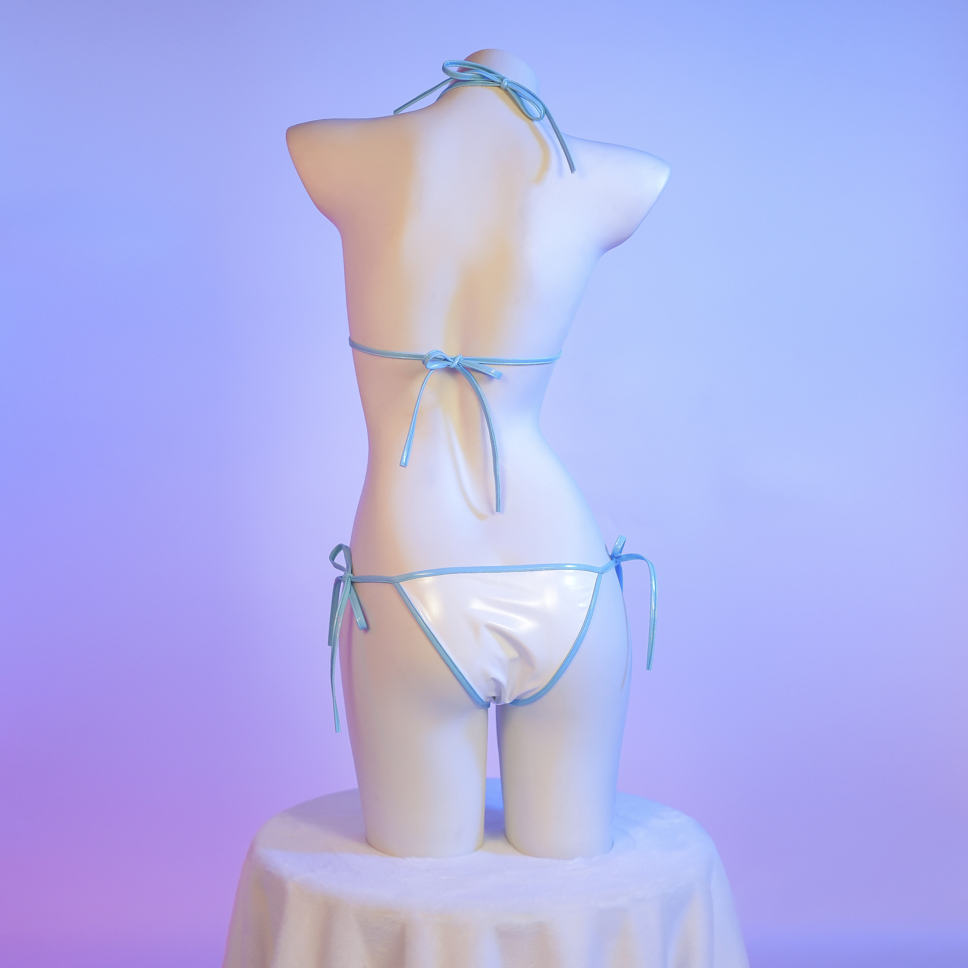 흥미로운 3 점 특허 가죽 비키니 2 차 롤 플레잉 초기 톤 파란색과 흰색 줄무늬 미니 속옷 134-C스토어 가기