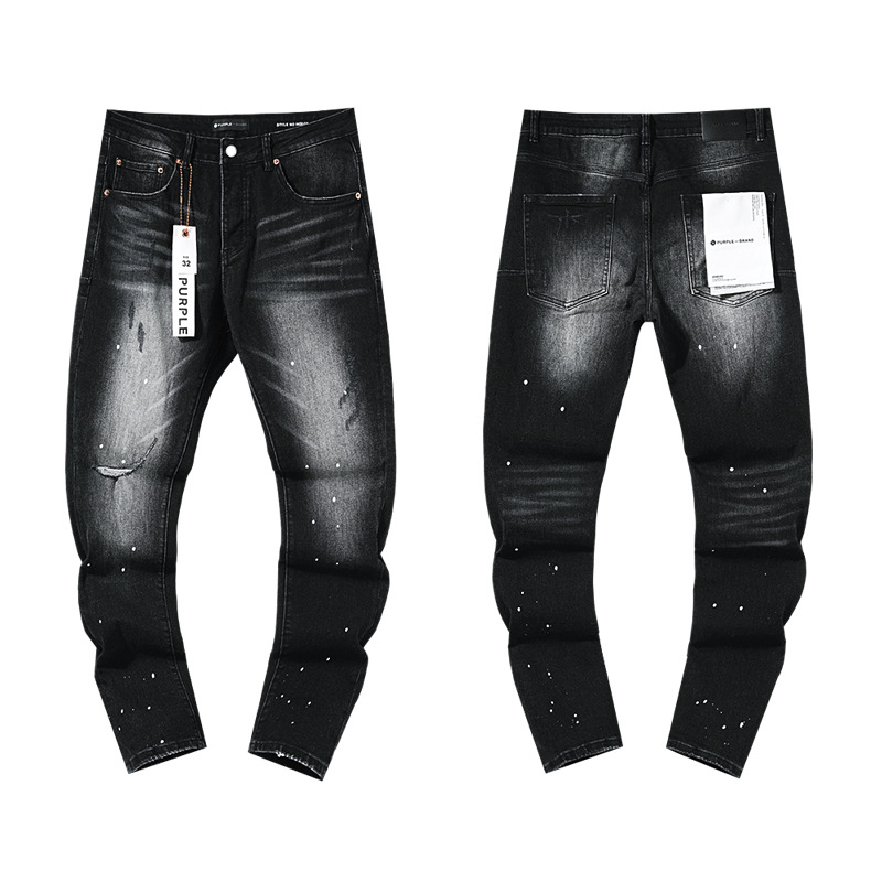 크로스보더 유럽 및 미국 PUIPLE BIACD 청바지, 워싱, 디스트레스드, 레트로, 홀, 잉크 스플래시, 핸섬, 아메리칸 스타일