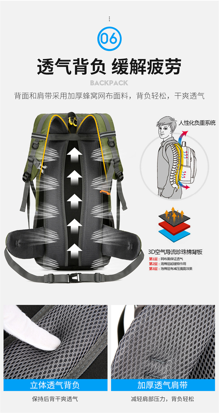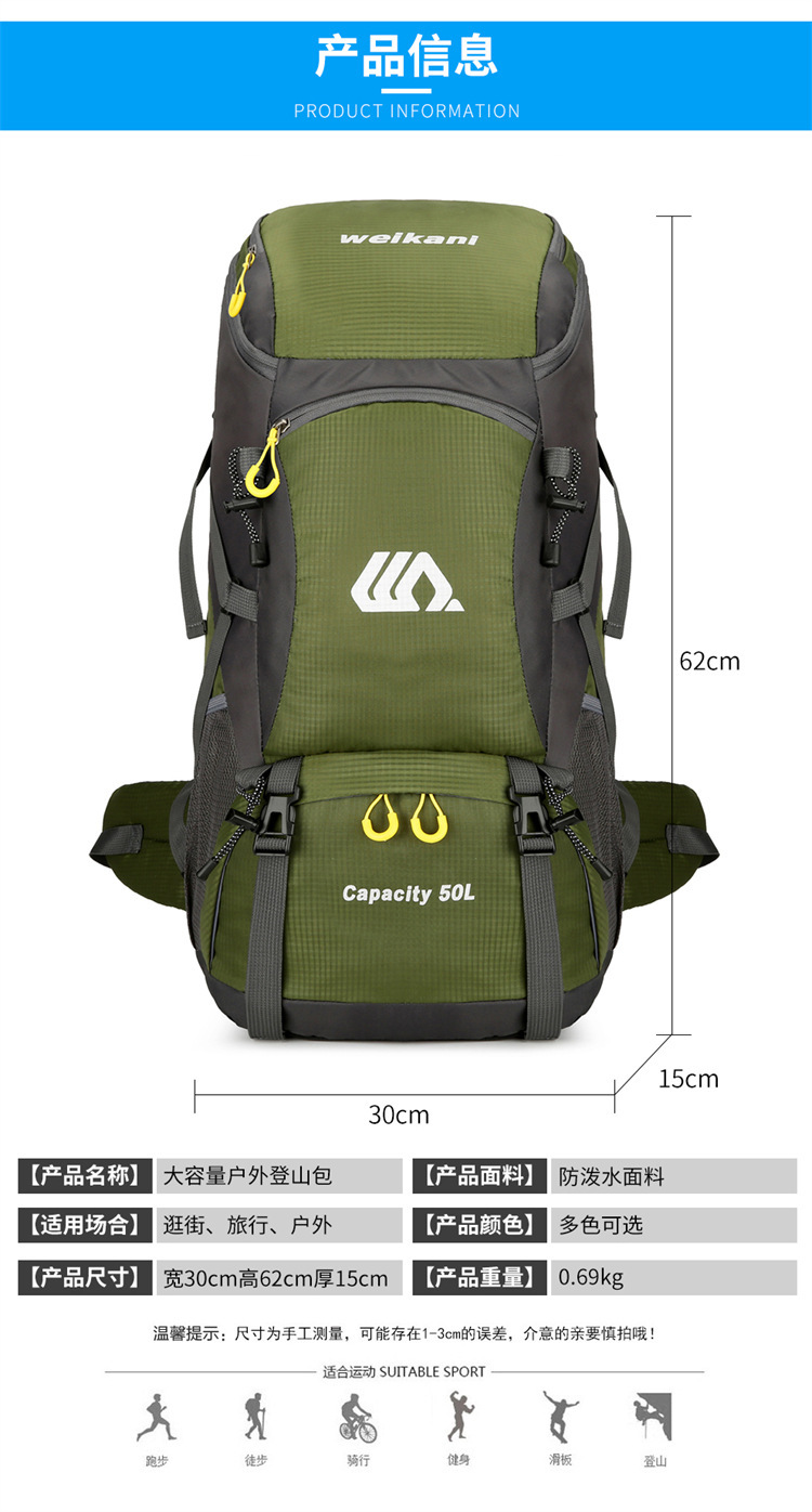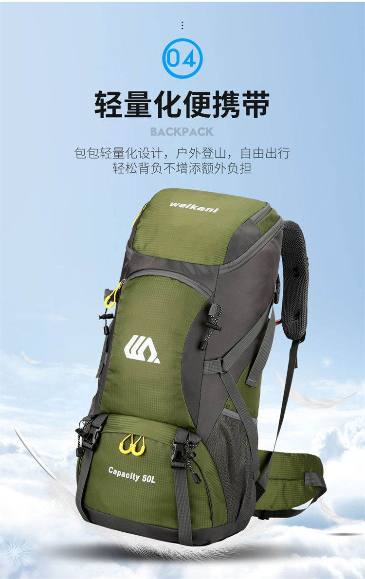 신제품 크로스보더 아웃도어 스포츠 백팩 등산 가방 50L 남녀 공용 하이킹 캠핑 가방 여행 도매 백팩