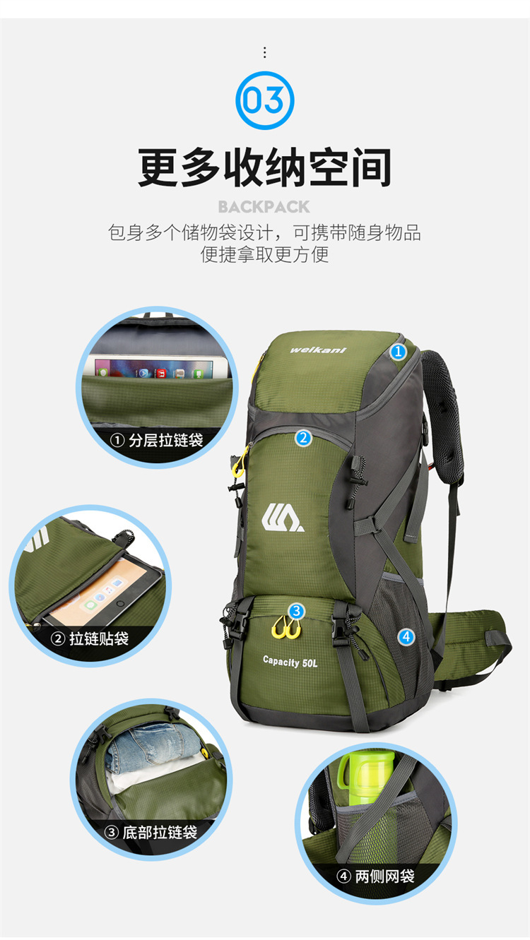 신제품 크로스보더 아웃도어 스포츠 백팩 등산 가방 50L 남녀 공용 하이킹 캠핑 가방 여행 도매 백팩스토어 가기