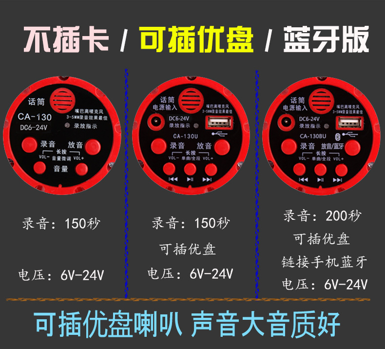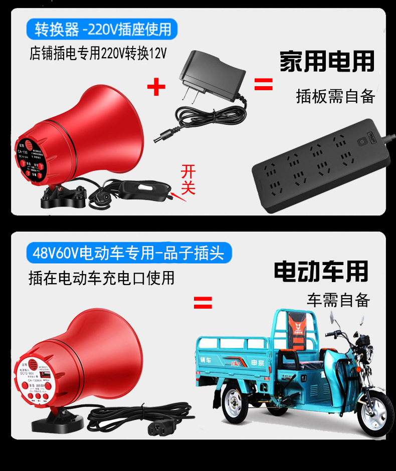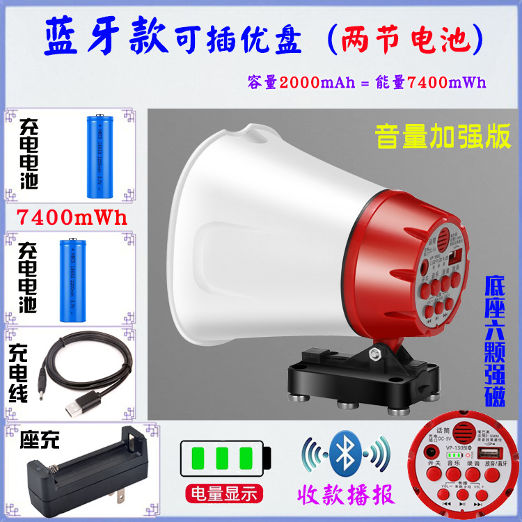 야외 확성기 메가폰 고출력 자동차 12v24V 레코딩 플레이어 충전 스톨 선전 혼스토어 가기