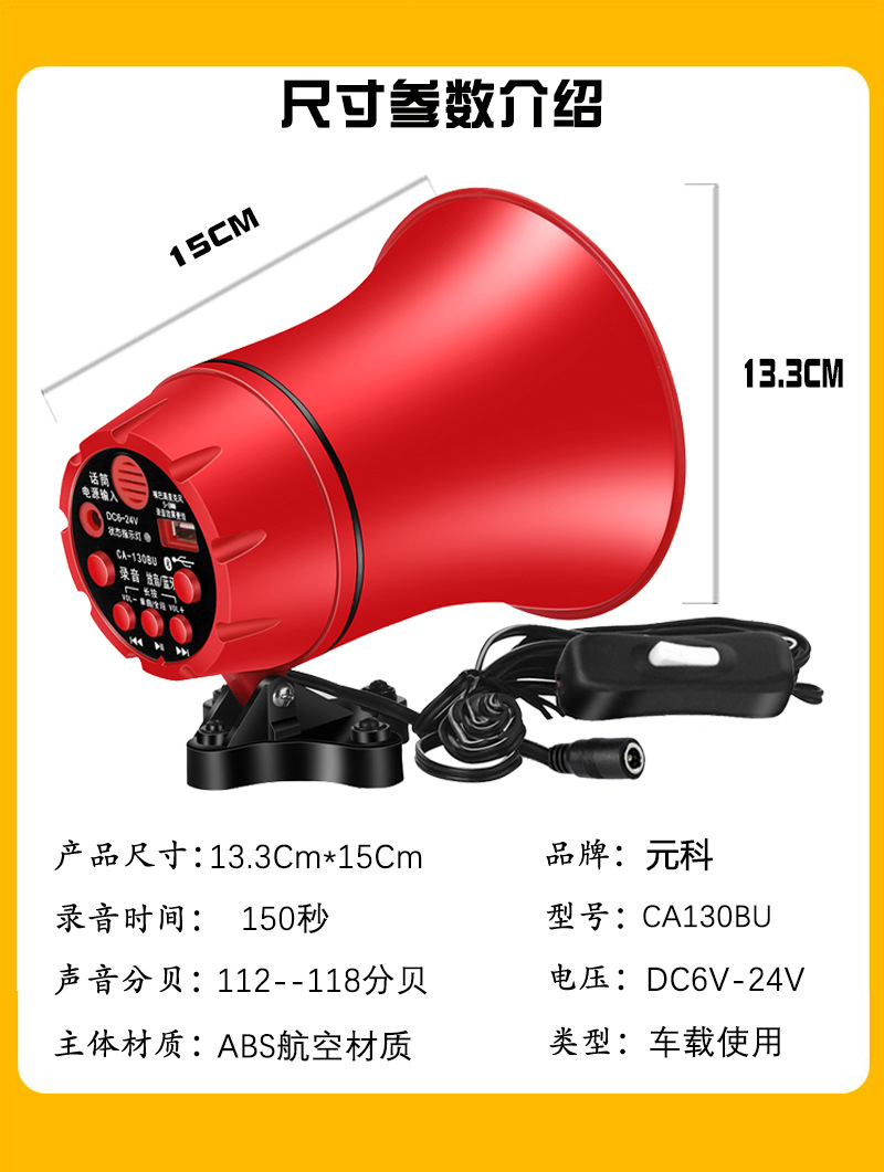 야외 확성기 메가폰 고출력 자동차 12v24V 레코딩 플레이어 충전 스톨 선전 혼