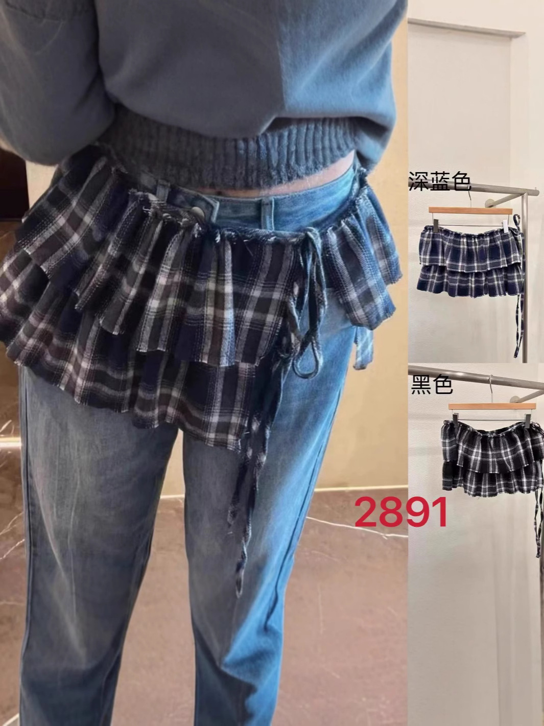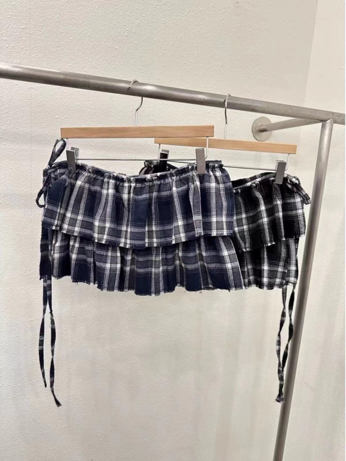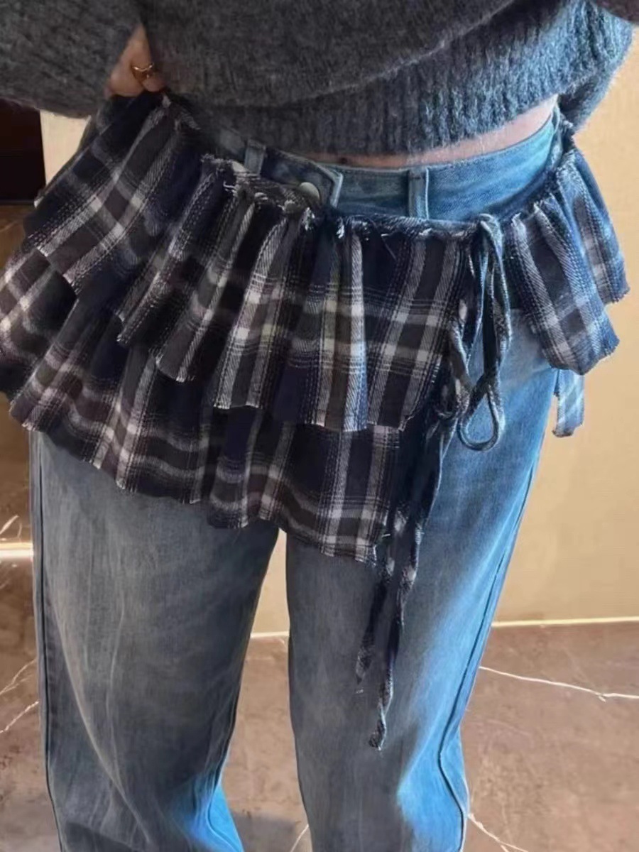 한국 스타일 신상 액세서리 체크무늬 장식 개성있는 헤진단치마