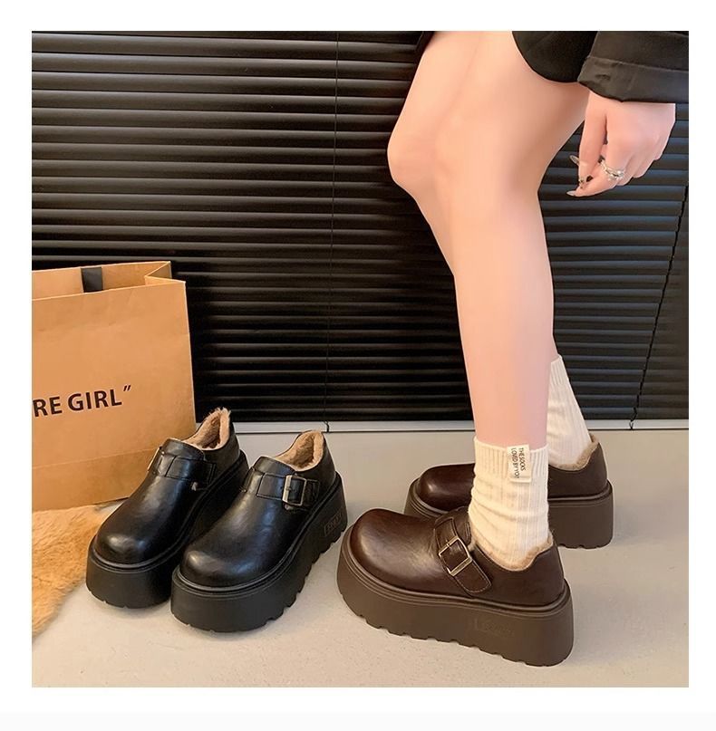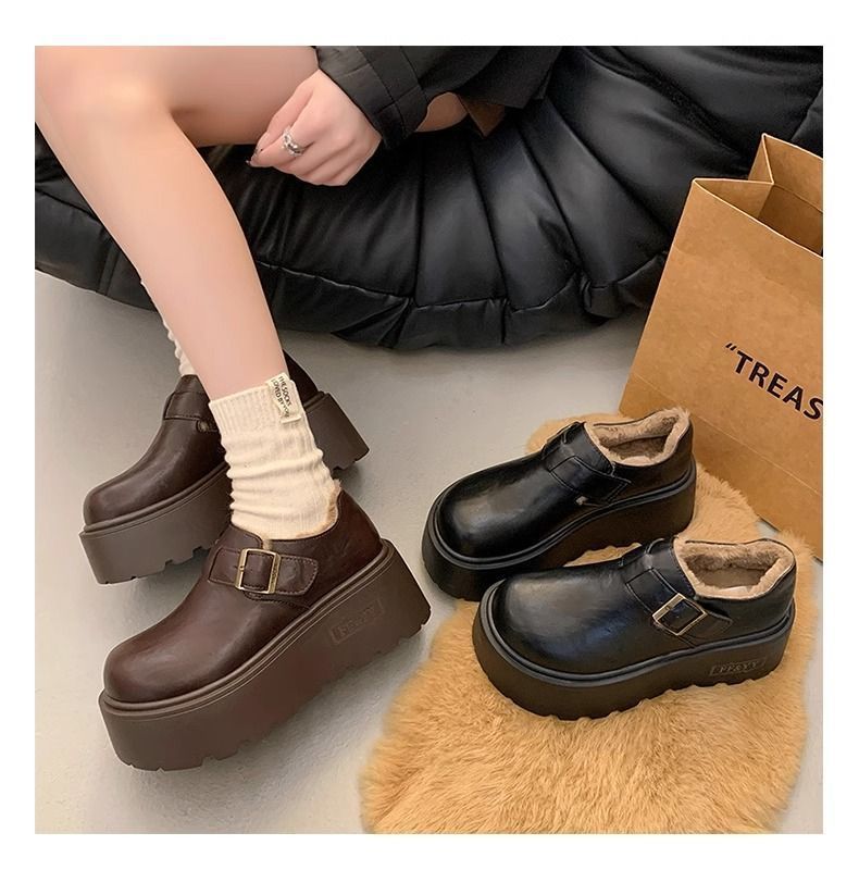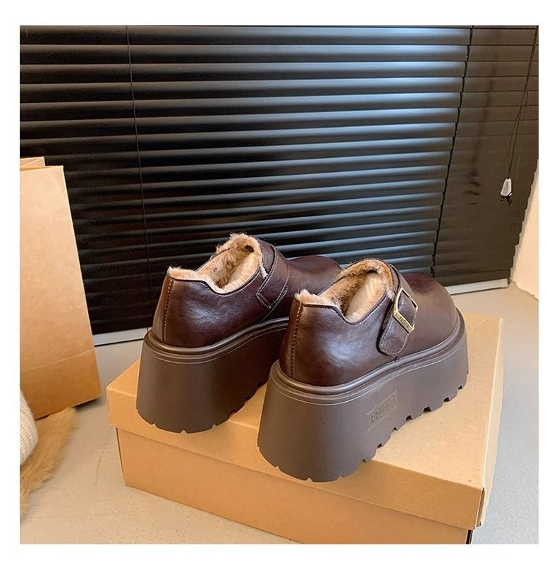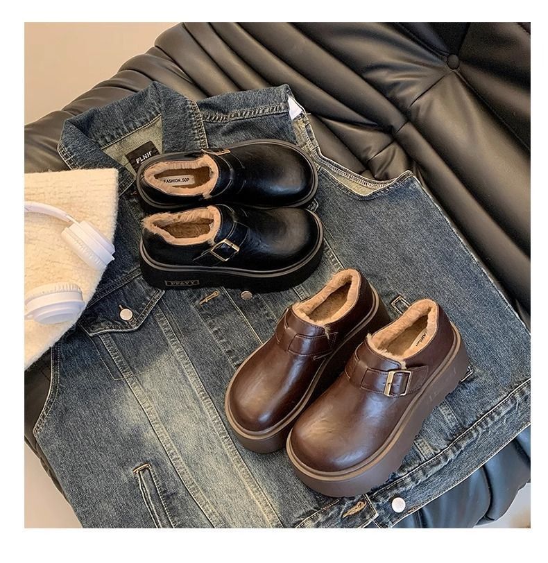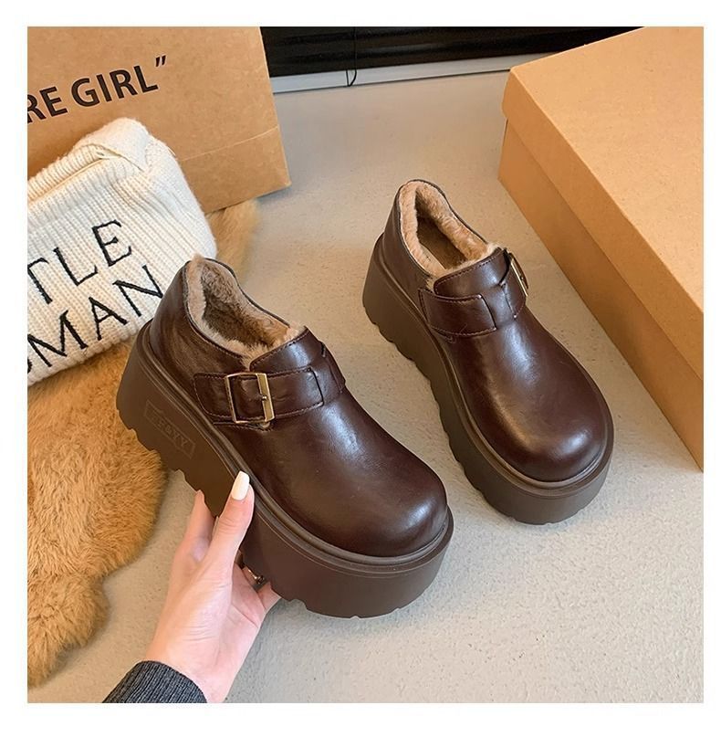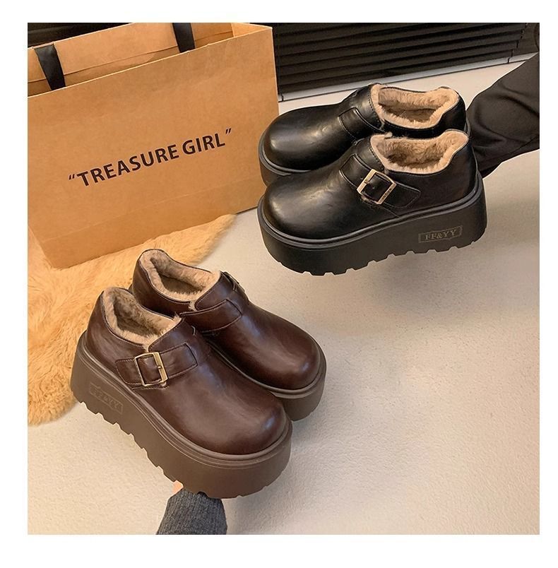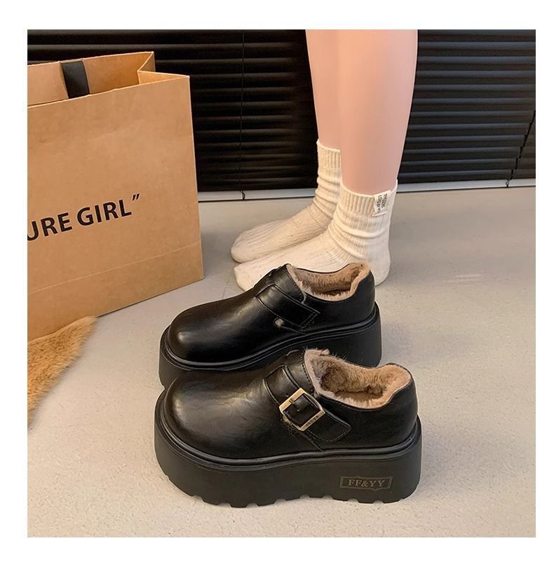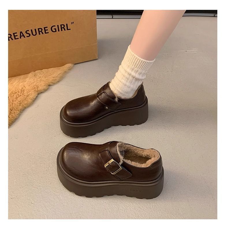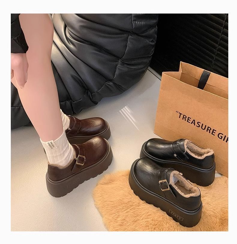 기모 로퍼 여성의 새로운 겨울 플랫폼 신발 코튼 신발 푹신한 신발 슬립 온 영국식 가죽 신발스토어 가기