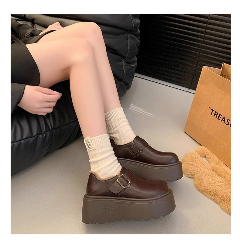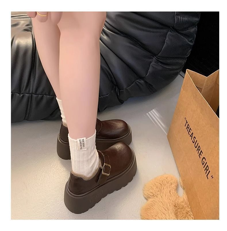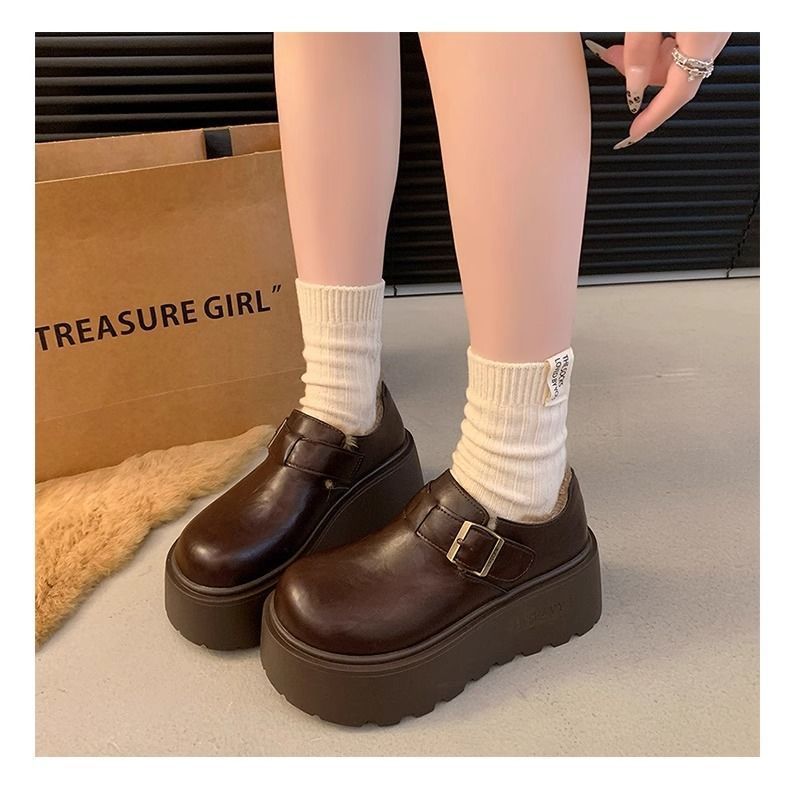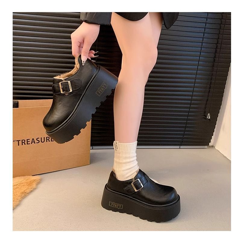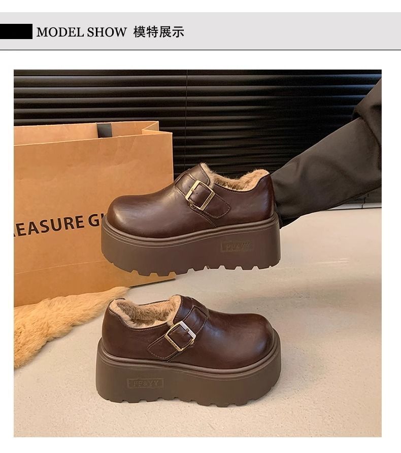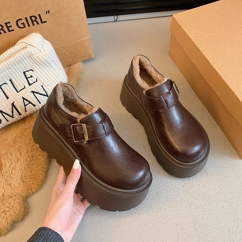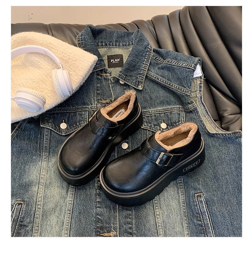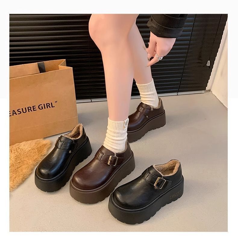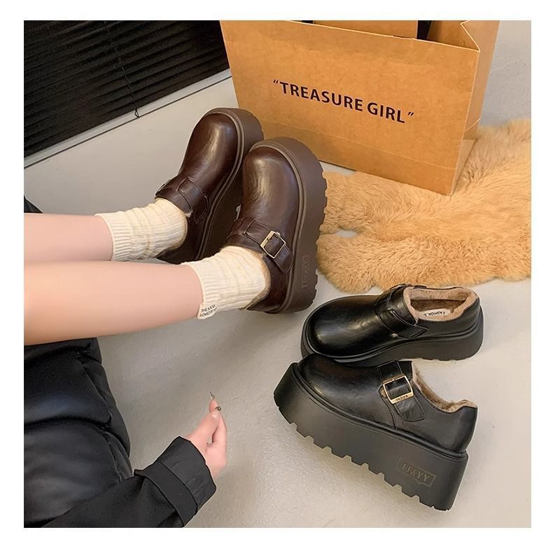 기모 로퍼 여성의 새로운 겨울 플랫폼 신발 코튼 신발 푹신한 신발 슬립 온 영국식 가죽 신발스토어 가기