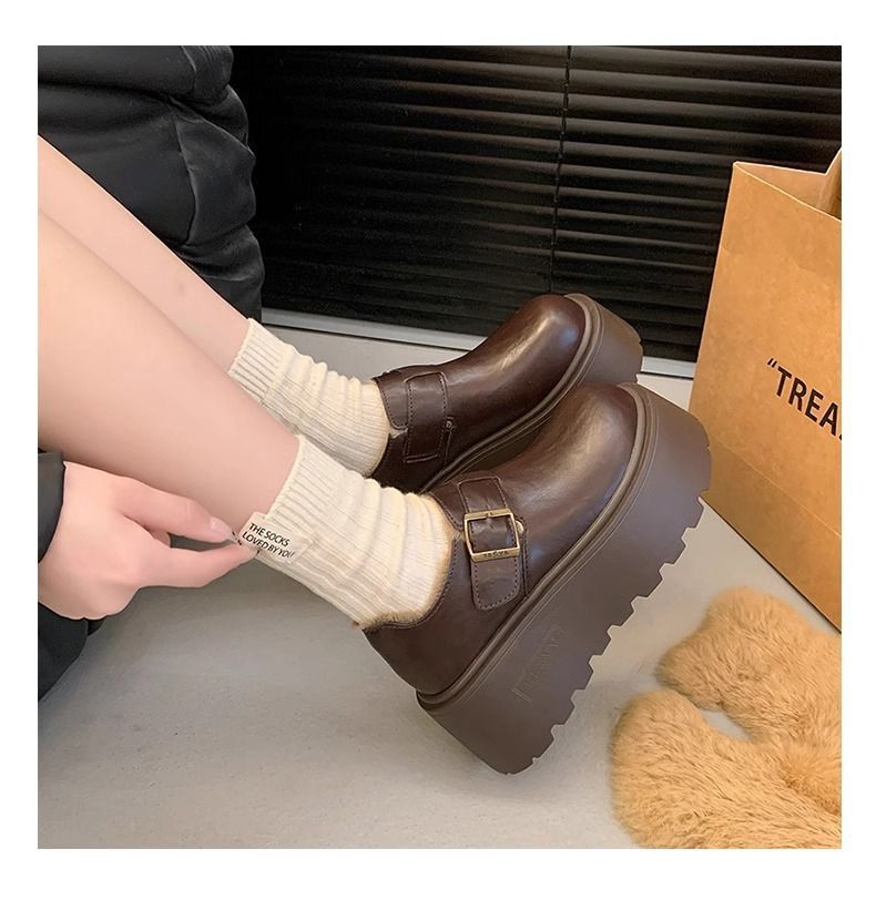 기모 로퍼 여성의 새로운 겨울 플랫폼 신발 코튼 신발 푹신한 신발 슬립 온 영국식 가죽 신발