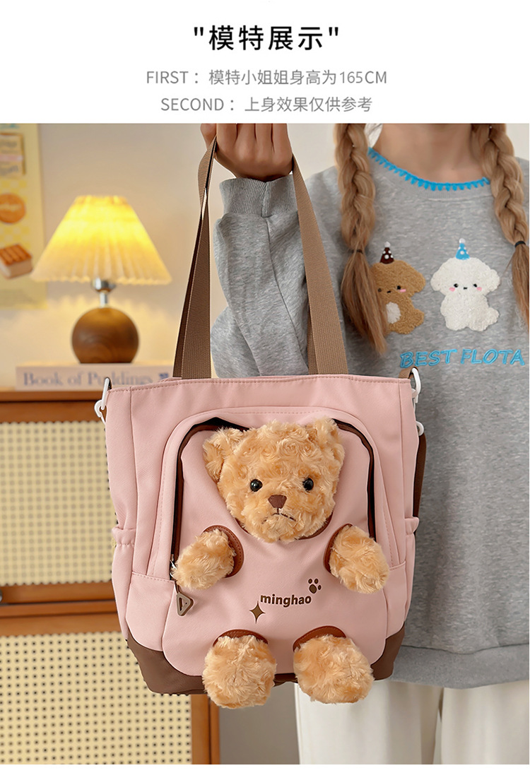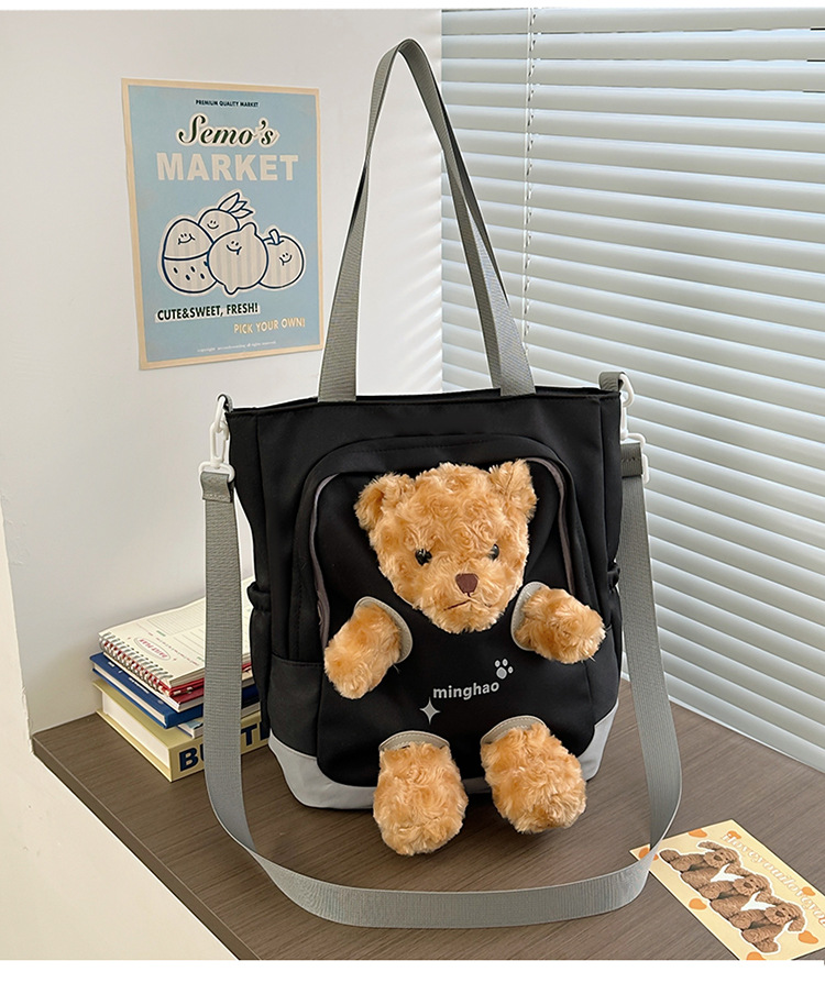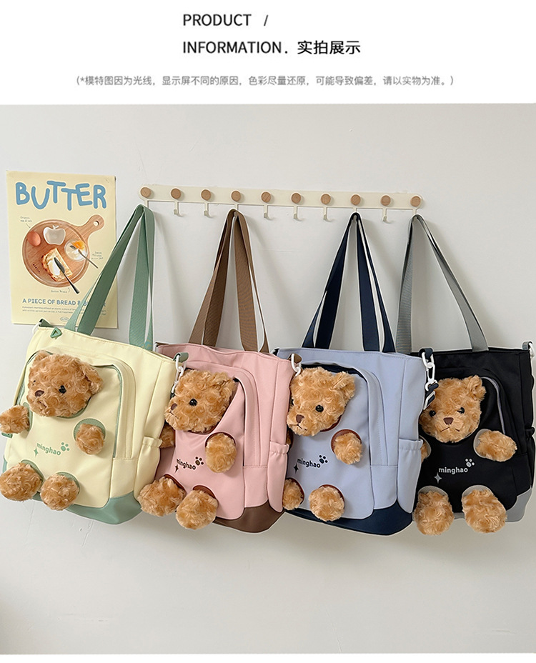 여성 귀여운 한국 어깨 가방 학생 대용량 주니어 고등학교 병합 가방 곰 인형 달콤한 크로스 바디 캔버스 가방스토어 가기