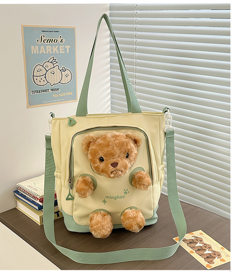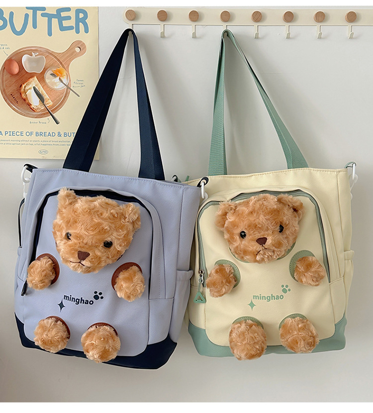 여성 귀여운 한국 어깨 가방 학생 대용량 주니어 고등학교 병합 가방 곰 인형 달콤한 크로스 바디 캔버스 가방