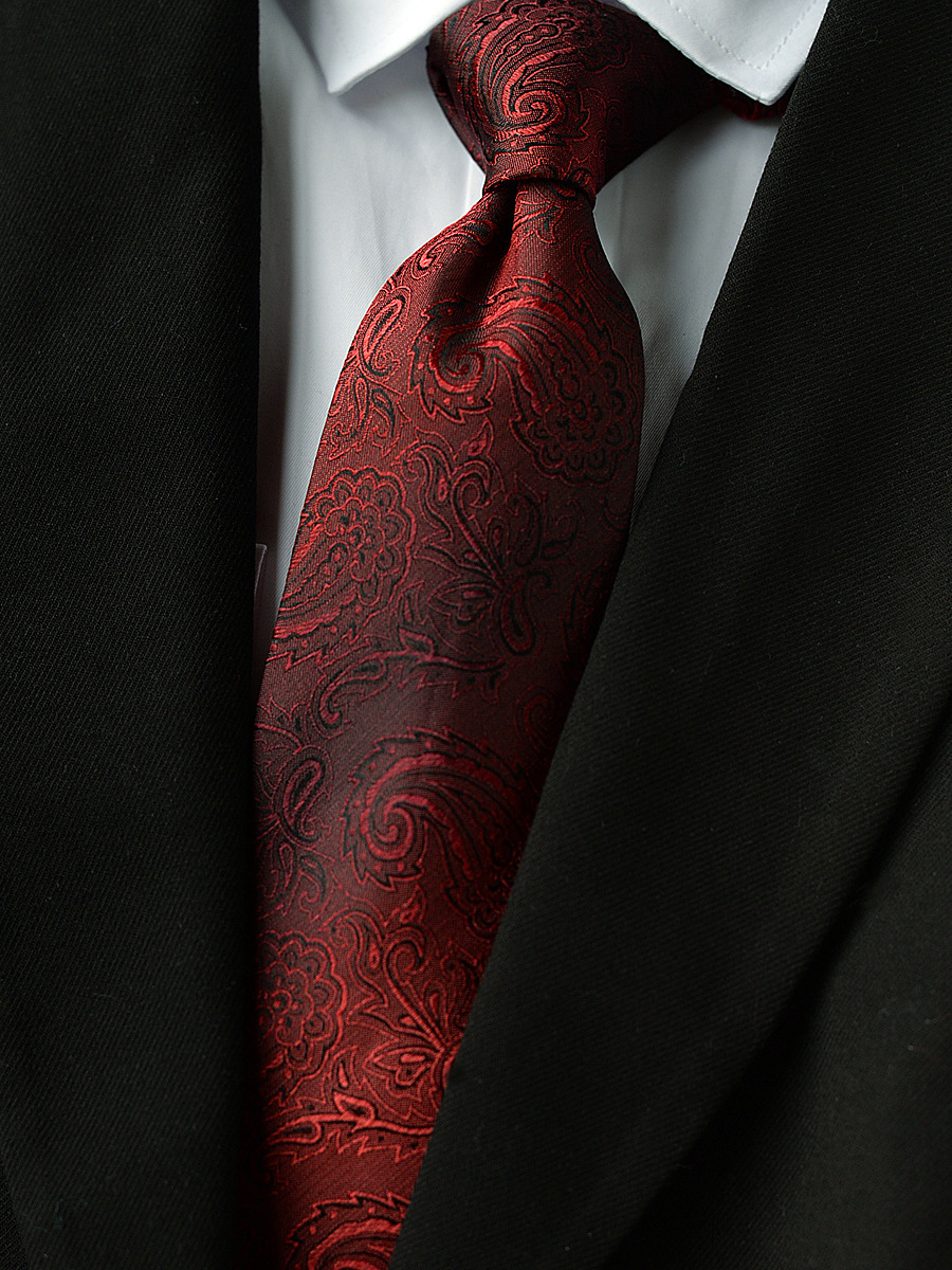 • 부르고뉴 캐슈 화이트 장식 실크 넥타이