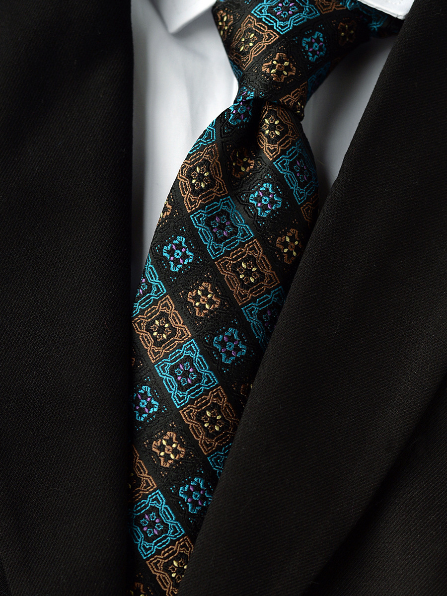 • 궁전 복고풍 체크 무늬 실크 넥타이