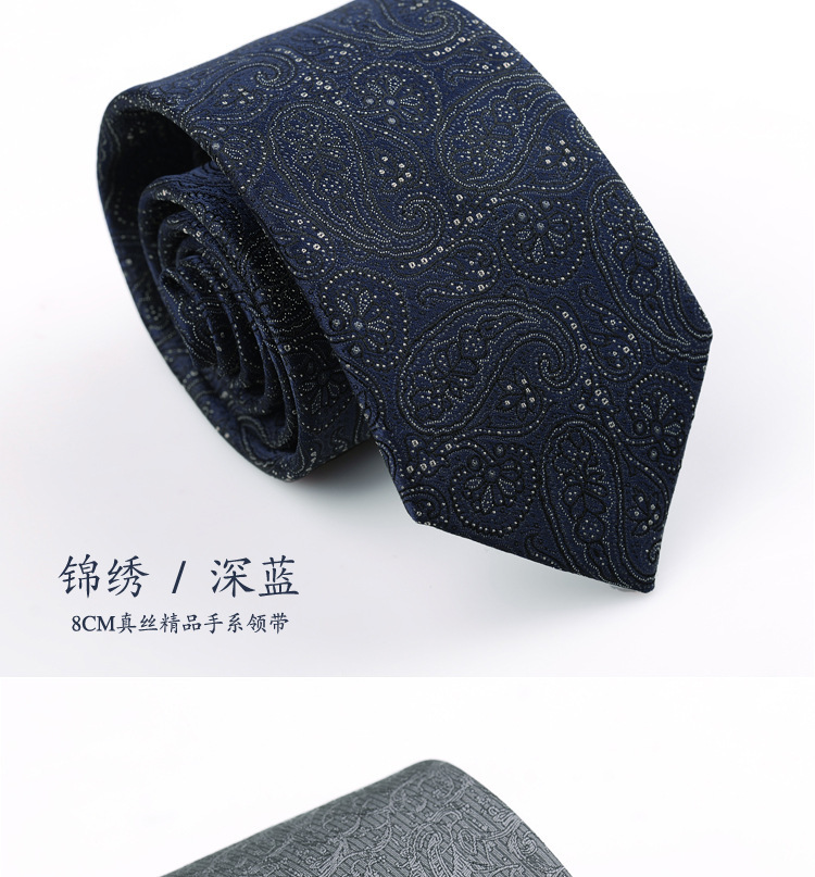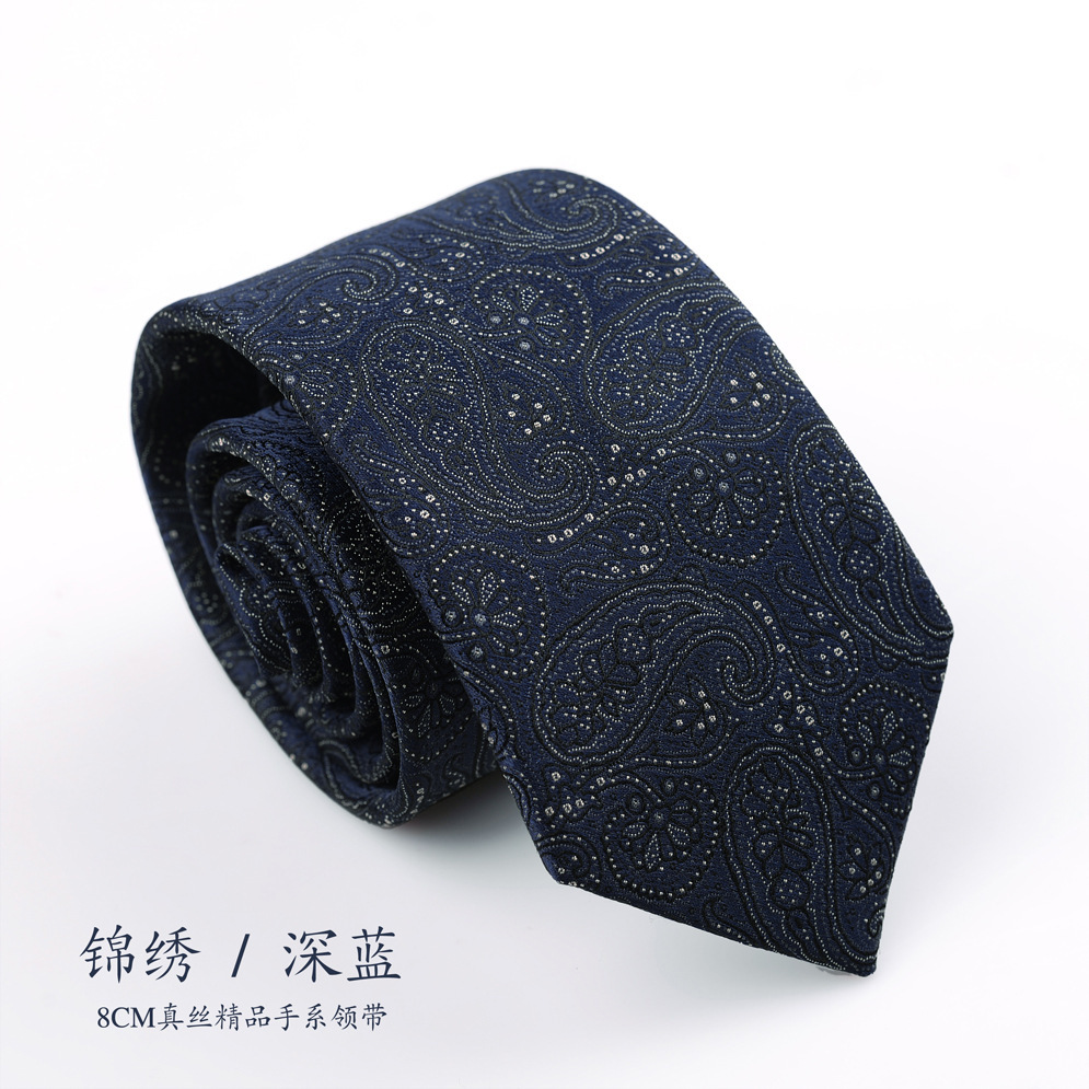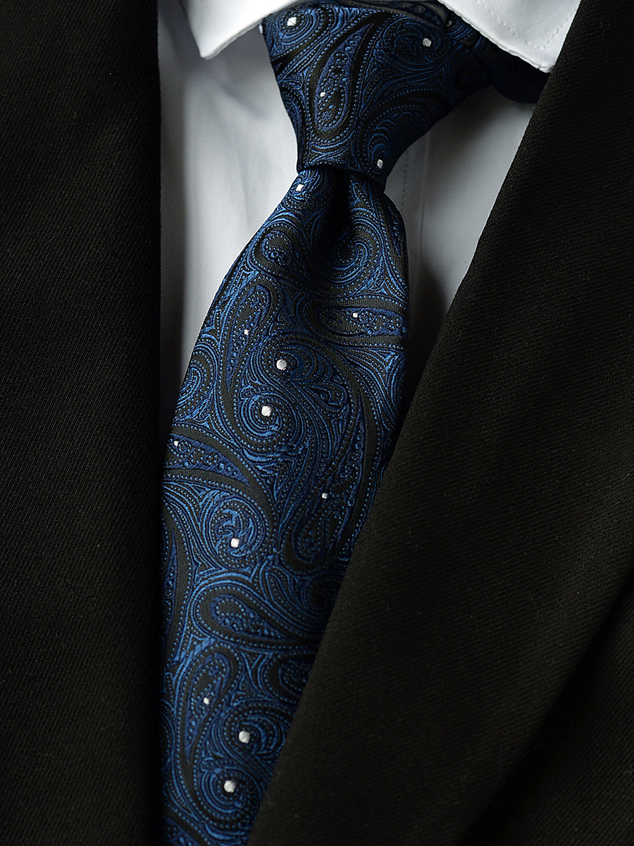 • 다크 블루 캐슈 화이트 장식 실크 넥타이