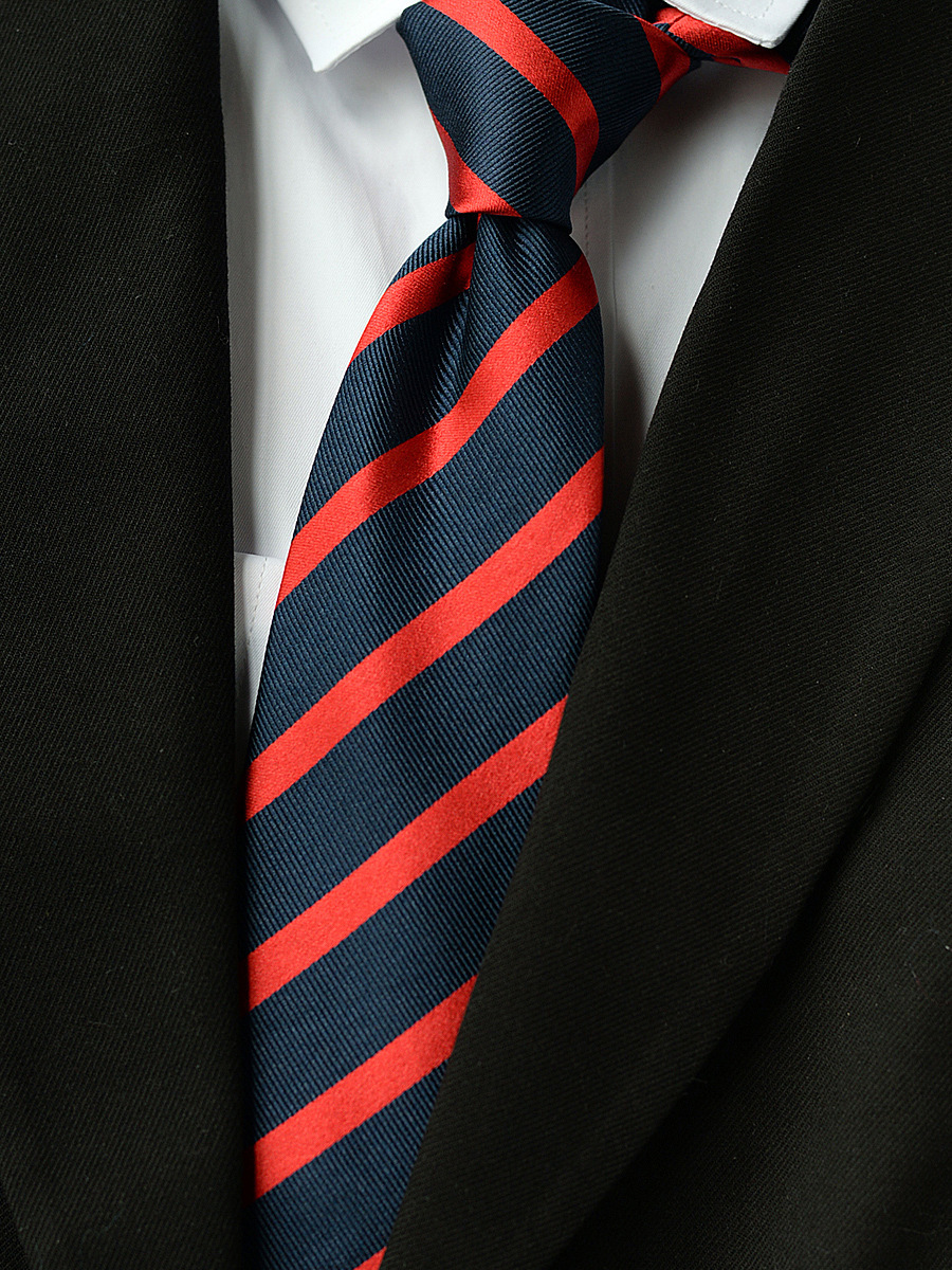 • 파란색과 빨간색 줄무늬 페리스 꽃 실크 넥타이