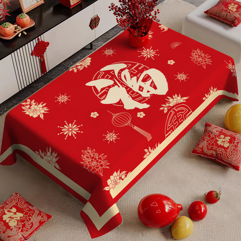 元旦新年桌布蛇年红色桌布喜庆印花客厅餐桌茶几桌布拍照背景布