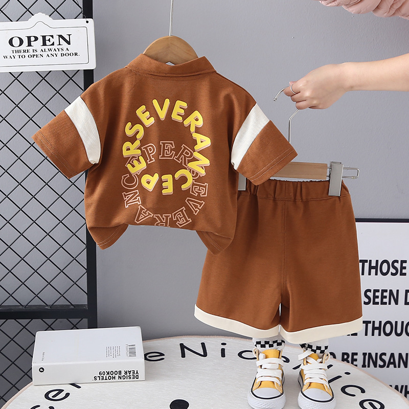 아기의 여름 2025 여름 새 소년 편지 엘 폴로 셔츠 반팔 투피스 어린이 캐주얼 옷스토어 가기
