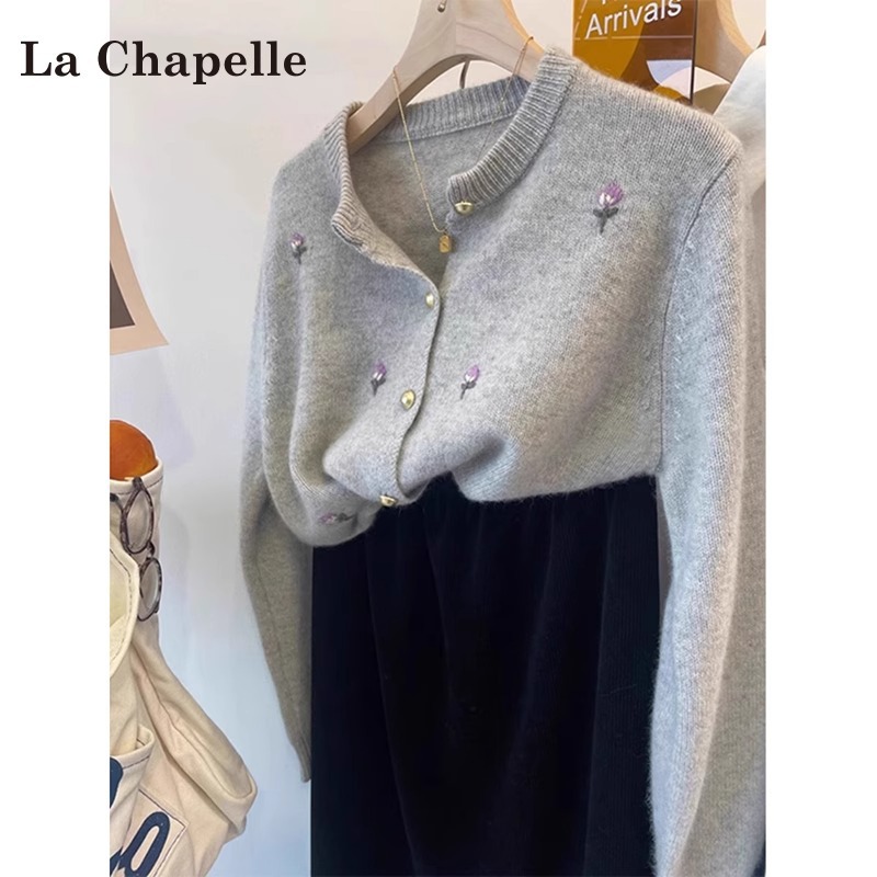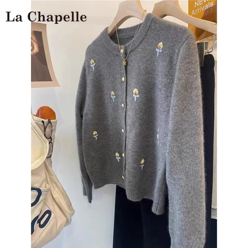 회색 프랑스 스웨터 카디건 여성의 2024 년 새로운 가을과 겨울 느슨한 둥근 목 나이를 줄이는 니트 코트 탑스토어 가기