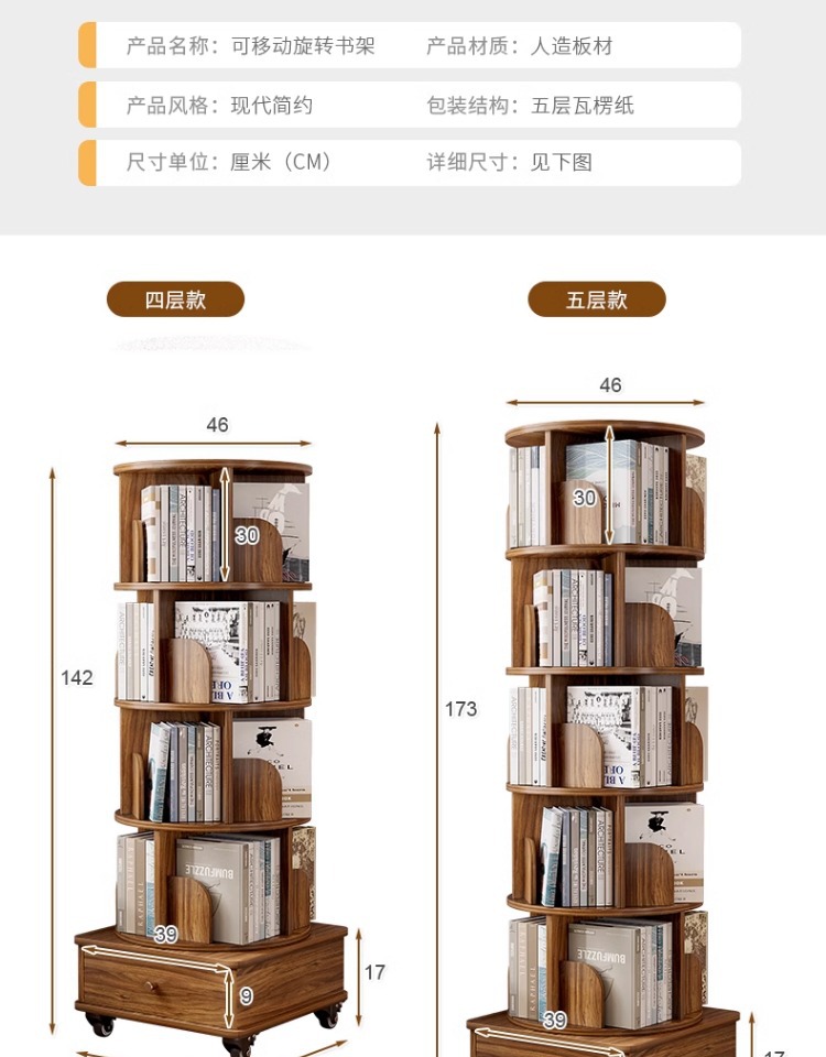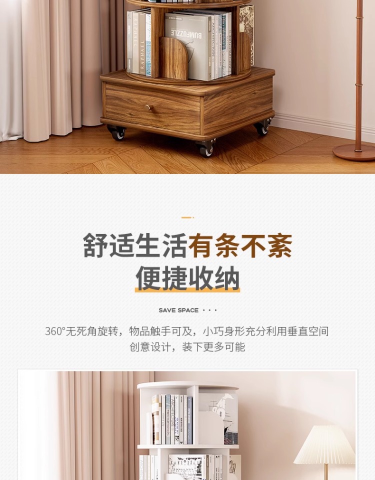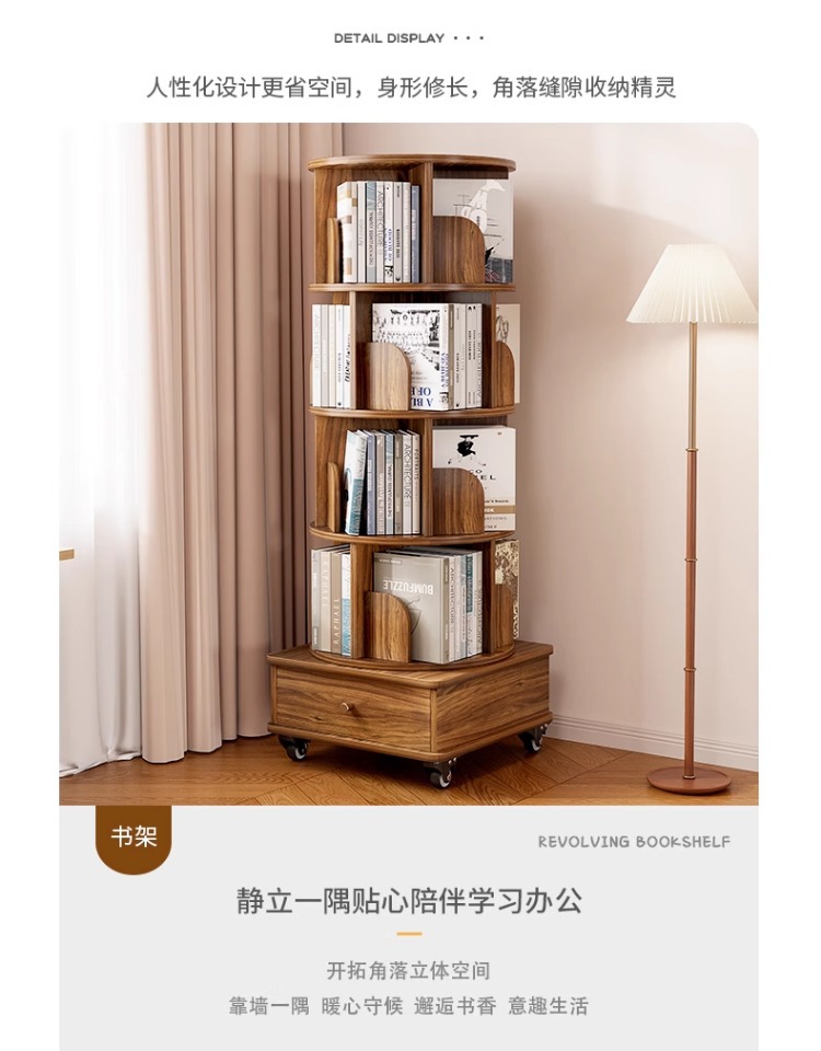 회전 책꽂이 360 도 바퀴 움직일 수 있는 거실 책장 바닥 다층 저장 선반 가정용 학생 보관 캐비닛