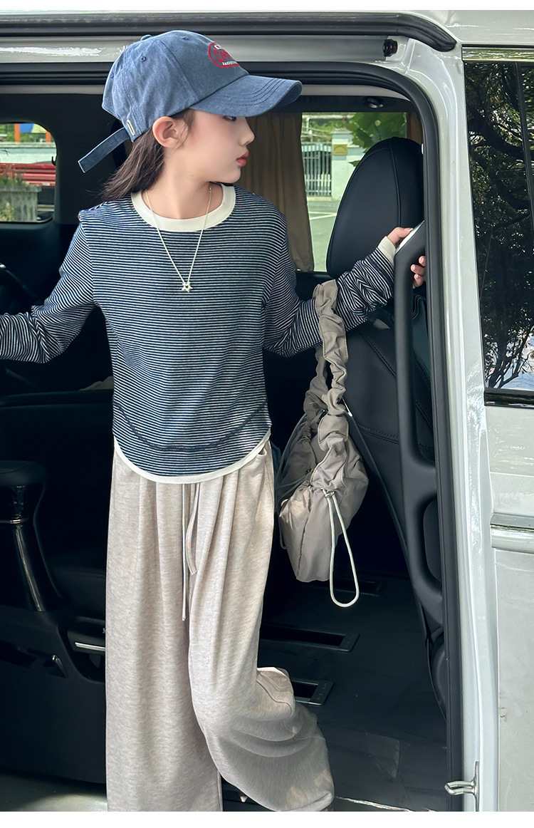 소녀 티셔츠 봄과 가을 2025 새로운 어린이 내부 긴 소매 탑 슬림 핏 스트라이프베이스 셔츠 큰 어린이 니트웨어스토어 가기