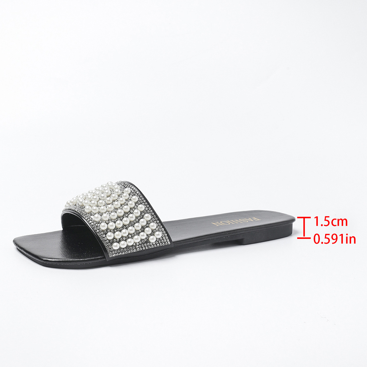유럽과 미국의 대외 무역 플랫 플러스 사이즈 구슬 슬리퍼 여성 스퀘어 헤드 라인스톤 경량 비치 샌들 및 슬리퍼스토어 가기