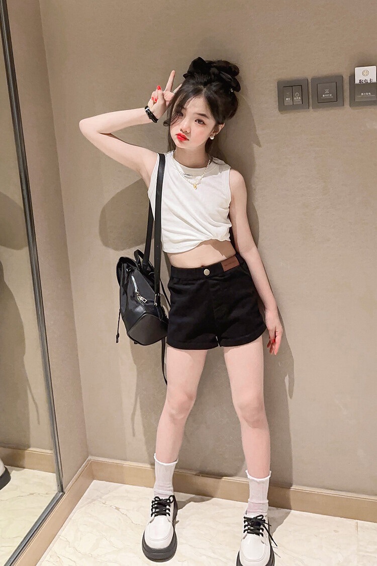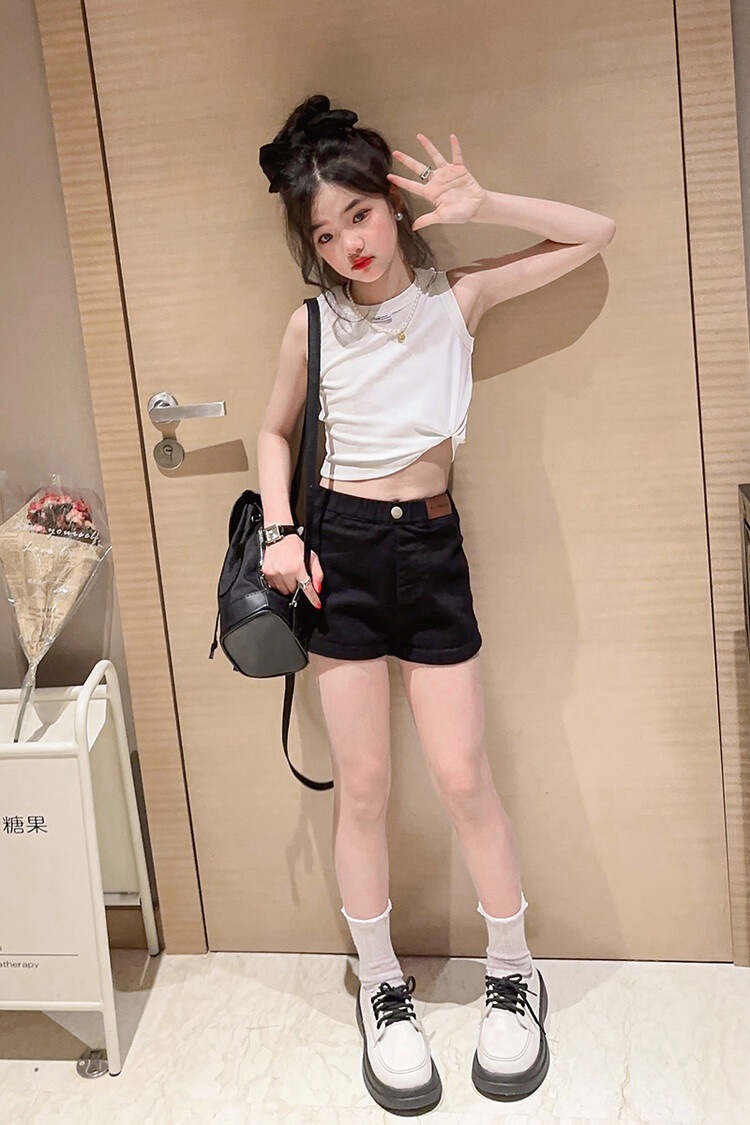 소녀 조끼 반바지 여름 투피스 세트 2025 새로운 어린이 서양 스타일 유행 얇은 여름 유행 세트스토어 가기