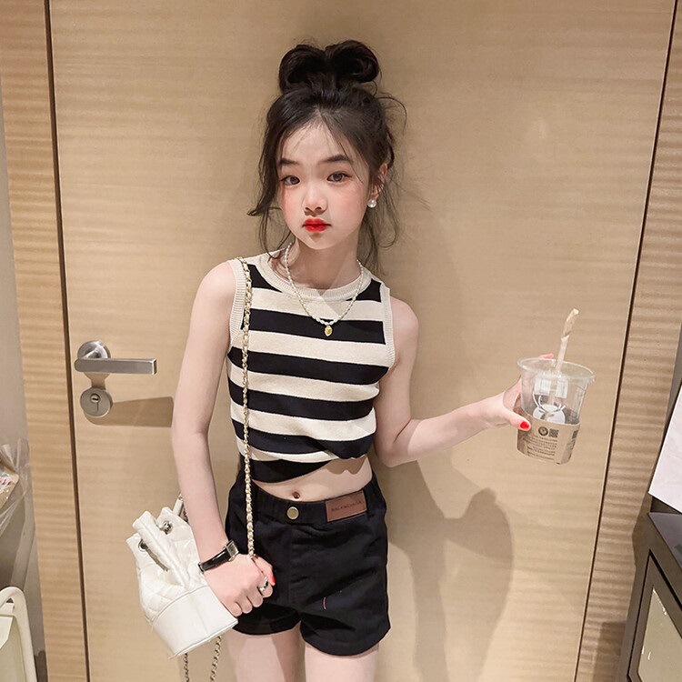 소녀 조끼 반바지 여름 투피스 세트 2025 새로운 어린이 서양 스타일 유행 얇은 여름 유행 세트