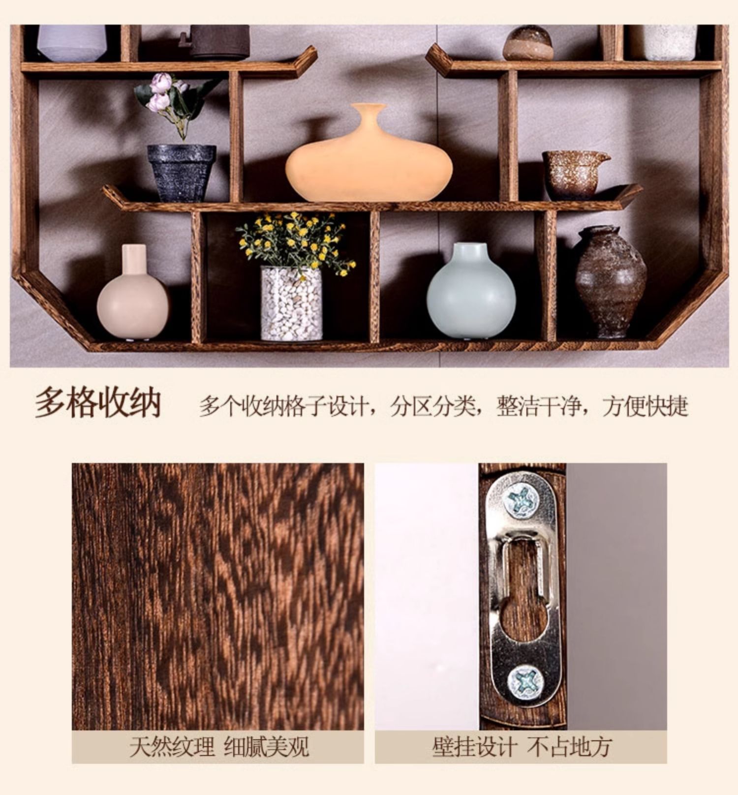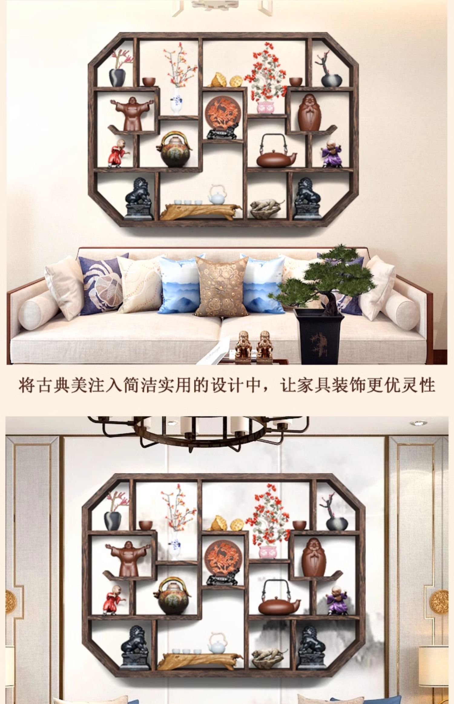 골동품 랙 솔리드 우드 새로운 중국 벽 걸이 벽 차 세트 디스플레이 랙 스토리지 랙 간단한 현대 Duobao Pavilion 골동품 랙