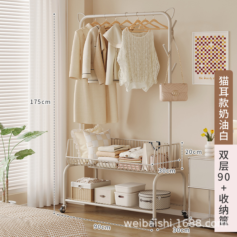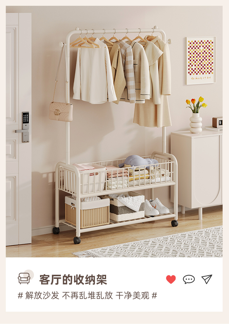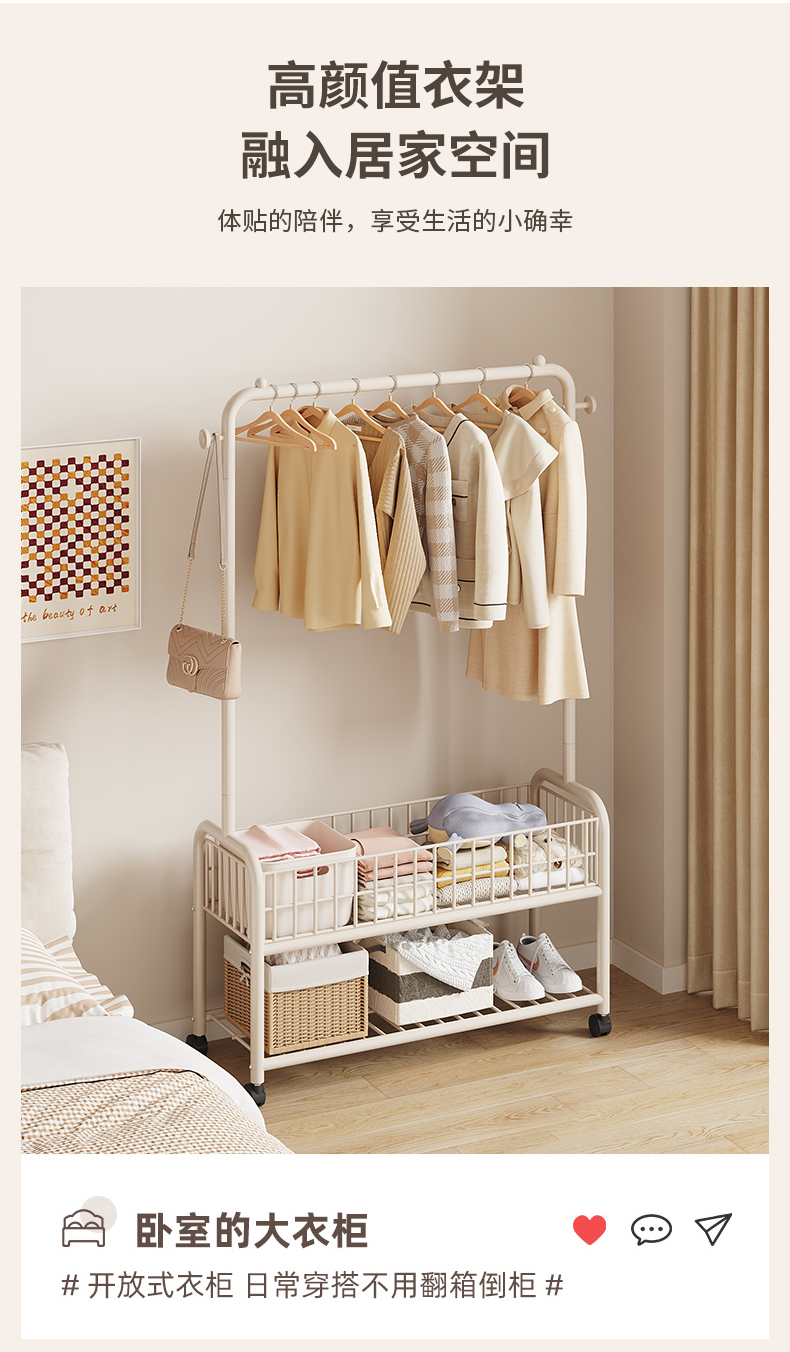 옷 옷걸이 바닥 침실 기숙사 코트 랙 작은 간단한 가정용 의류 보관 건조 랙 모바일스토어 가기