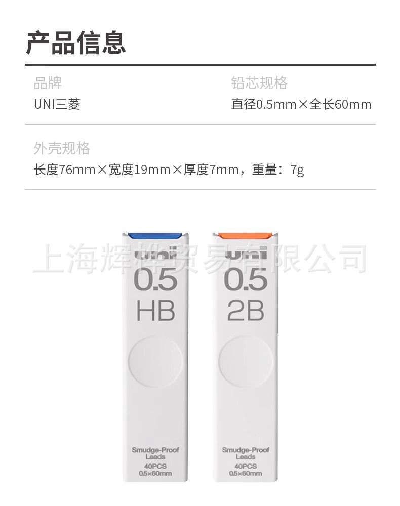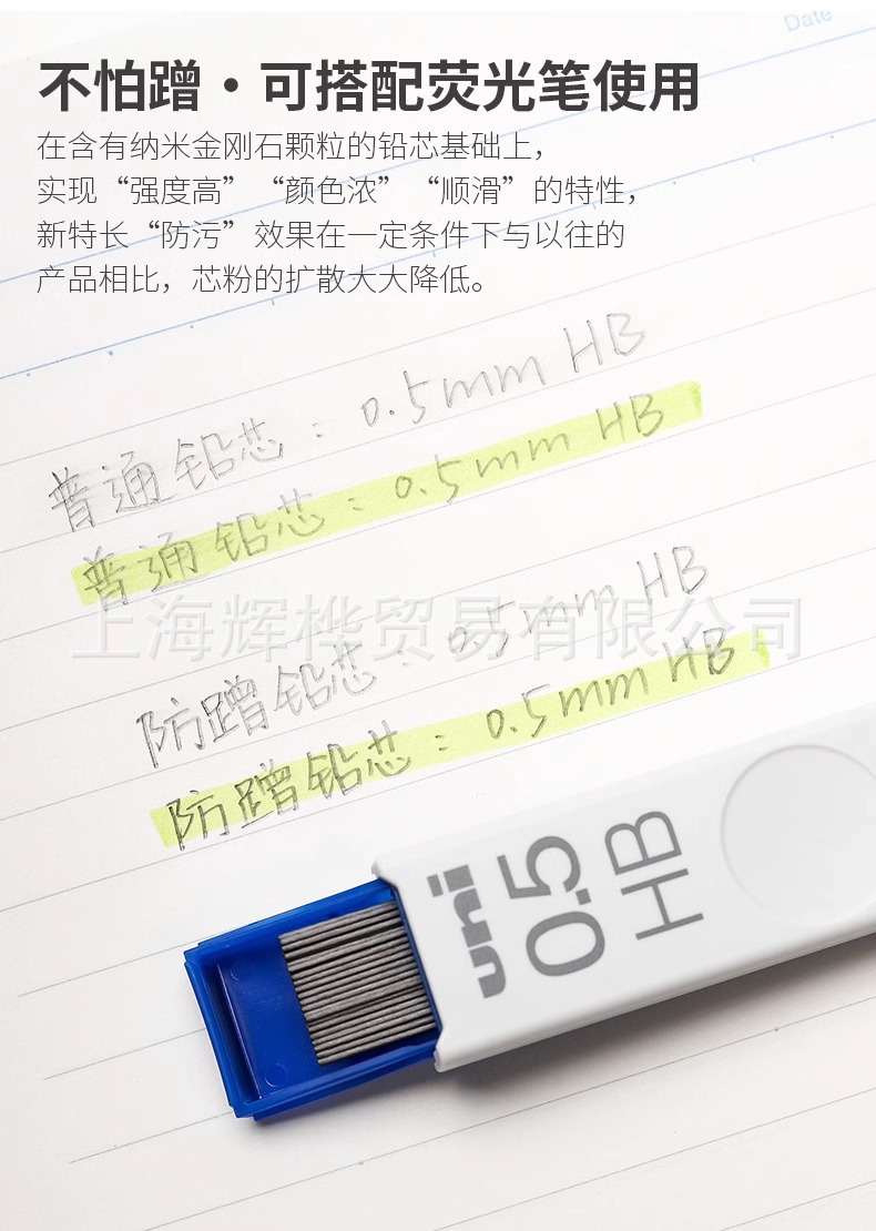 일본 유니미쓰비시 리드 UL-S 기계식 연필 교체 코어 두꺼운 검은 색 안티 러빙 더티 리드 안티 파울링 HB 리필 0.5스토어 가기