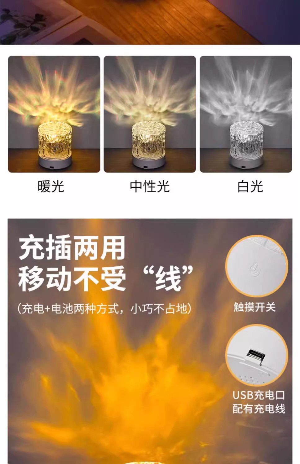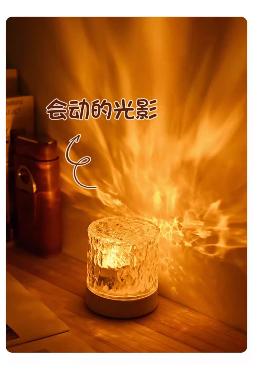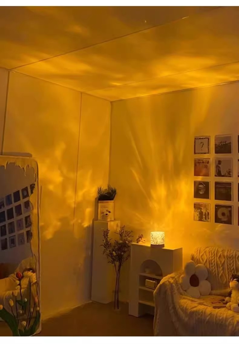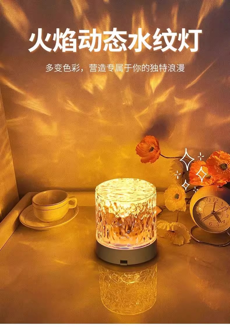 소스 제조 업체 창조적 인 데스크탑 침대 옆 밤 조명 불꽃 프로젝션 램프 낭만적 인 선물 별이 빛나는 하늘 물 패턴 분위기 램프