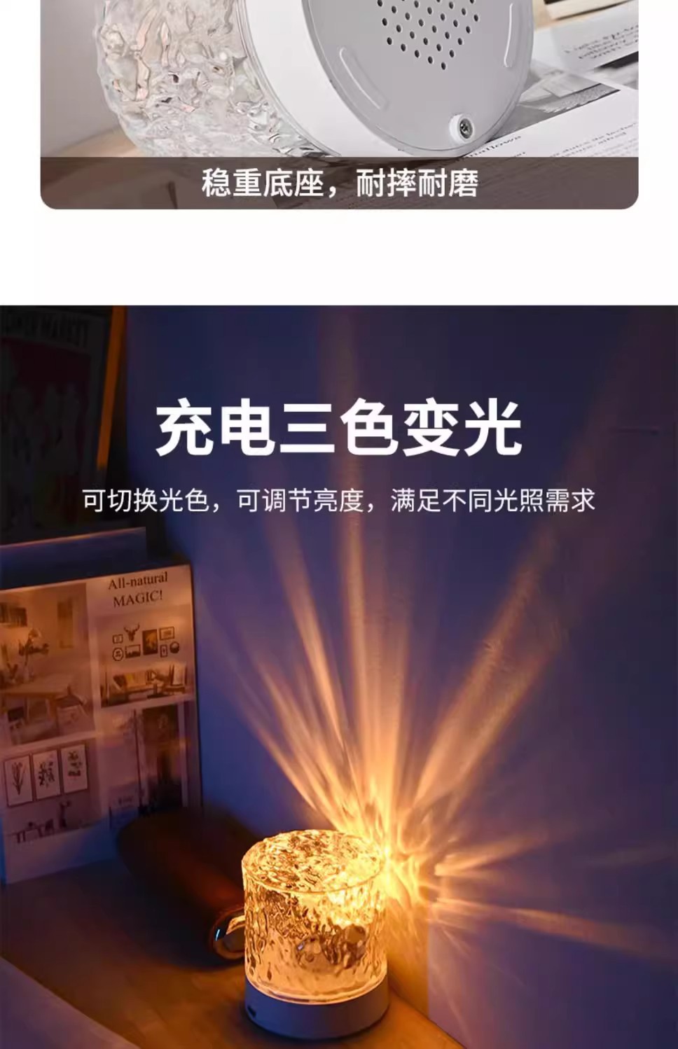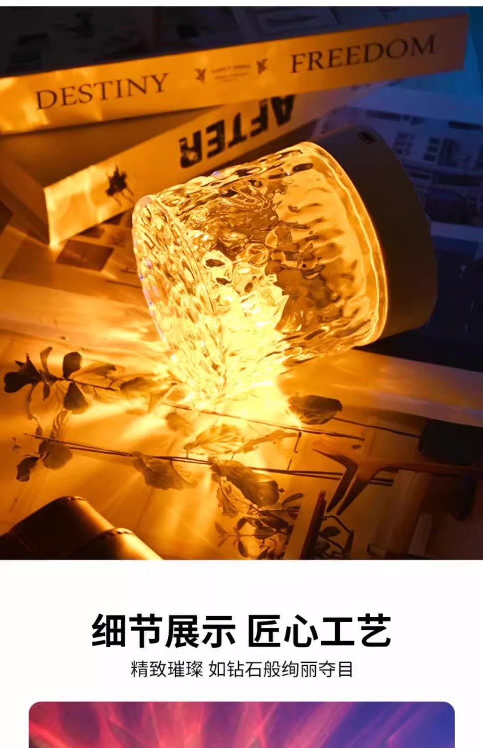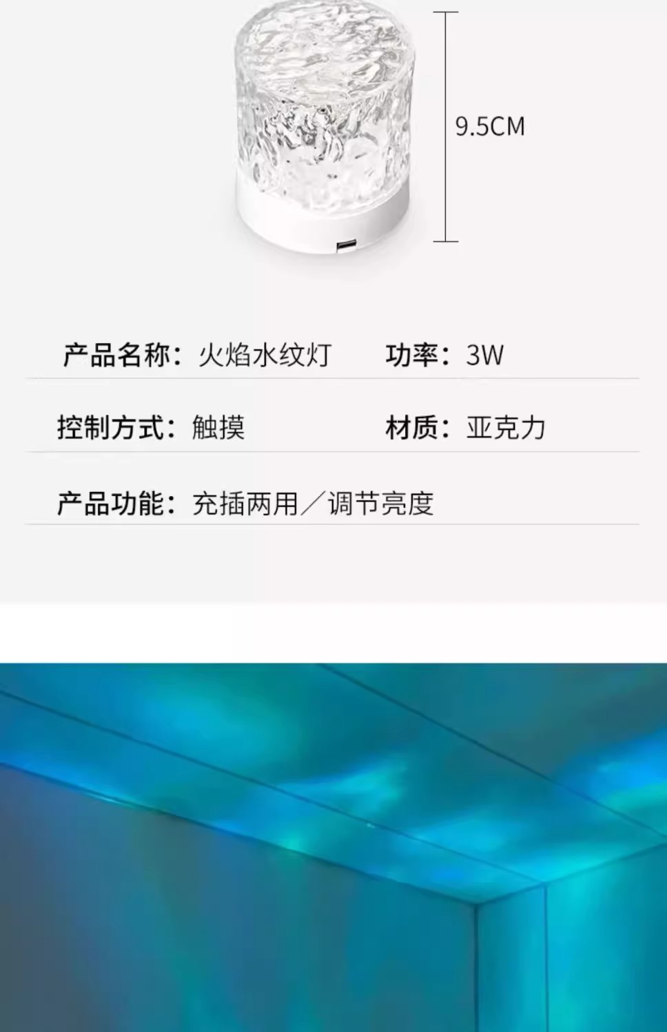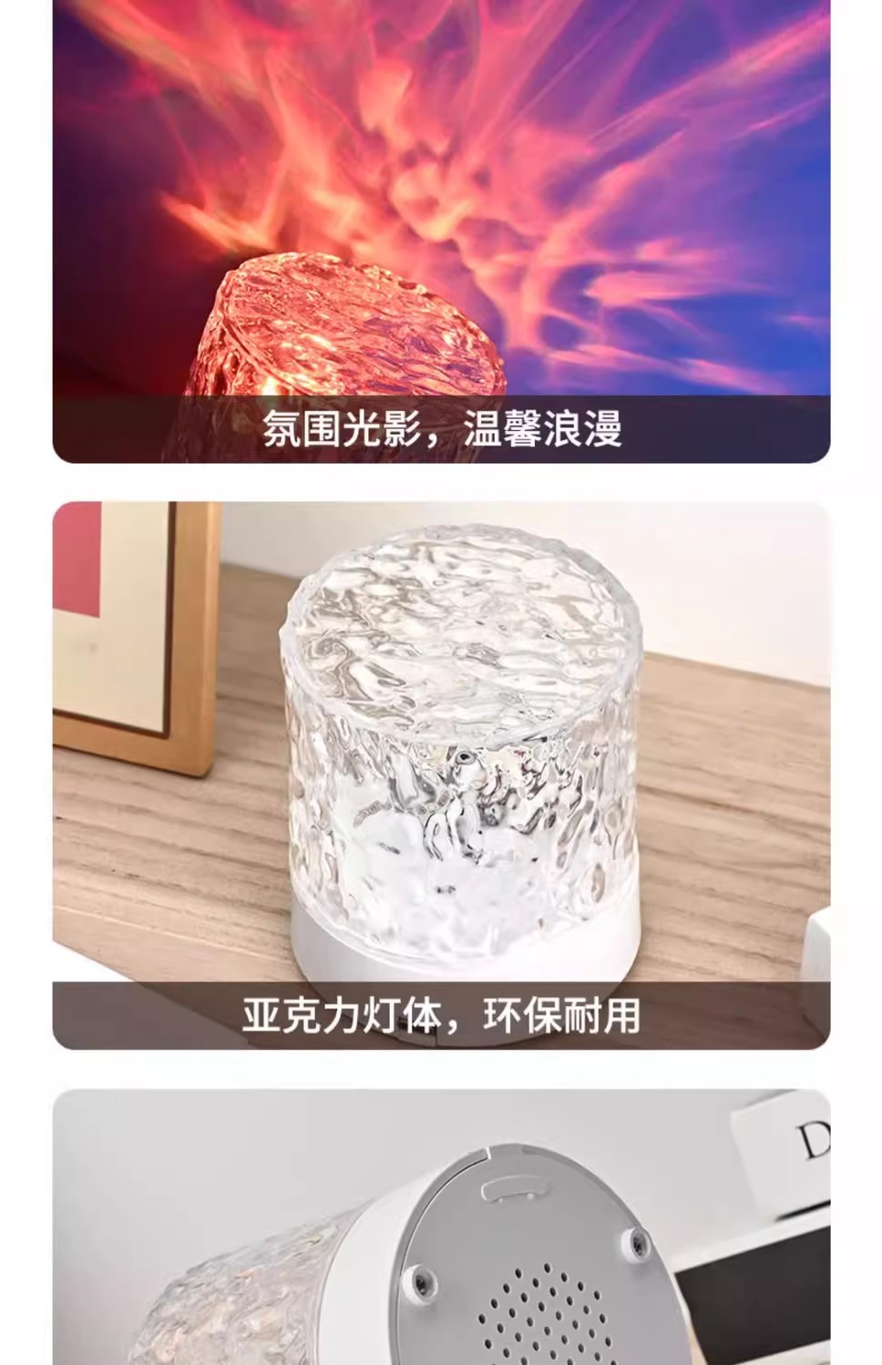 소스 제조 업체 창조적 인 데스크탑 침대 옆 밤 조명 불꽃 프로젝션 램프 낭만적 인 선물 별이 빛나는 하늘 물 패턴 분위기 램프