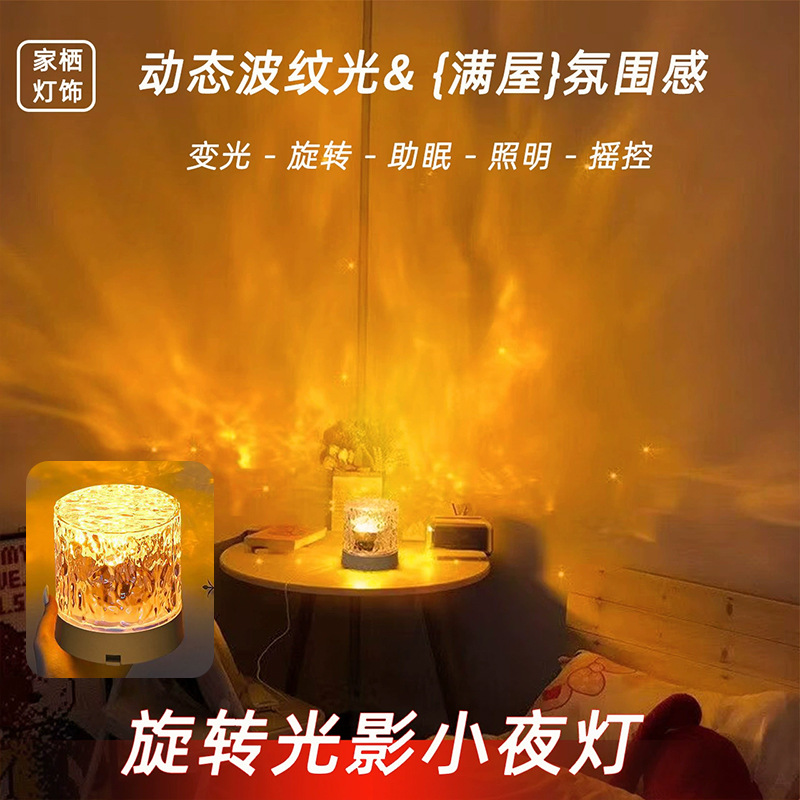 소스 제조 업체 창조적 인 데스크탑 침대 옆 밤 조명 불꽃 프로젝션 램프 낭만적 인 선물 별이 빛나는 하늘 물 패턴 분위기 램프스토어 가기