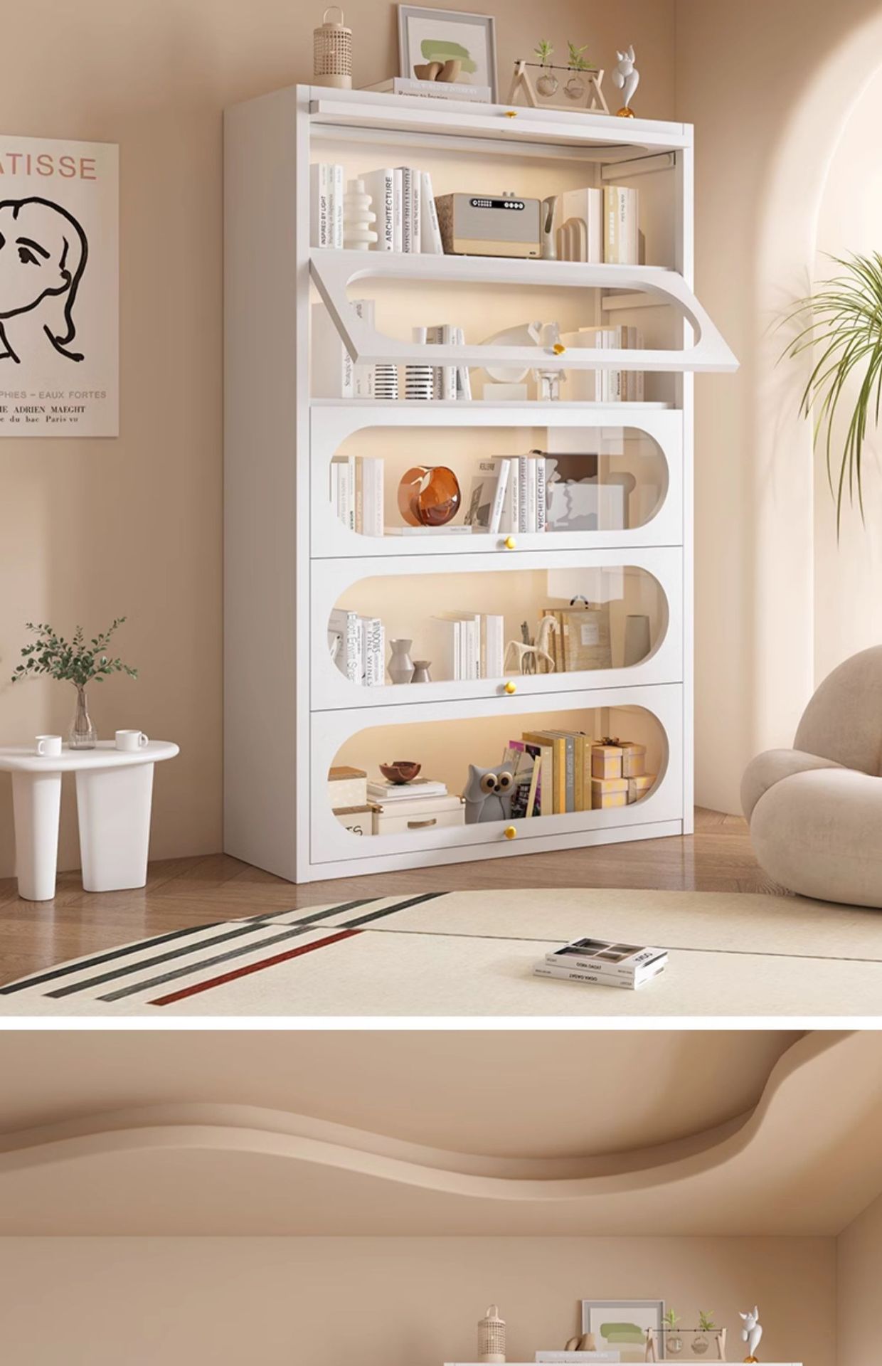 • 흰색 4도어 길이 60cm❤아크 유리문