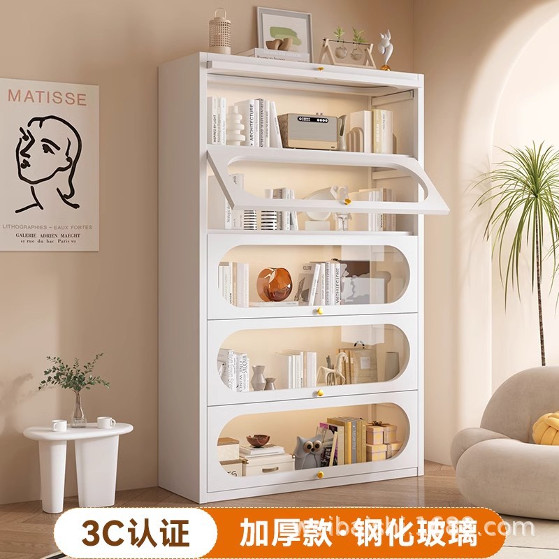 문 유리가있는 강철 책장 어린이 책장 방진 보관 캐비닛 거실 디스플레이 캐비닛 철 랙 철 캐비닛스토어 가기