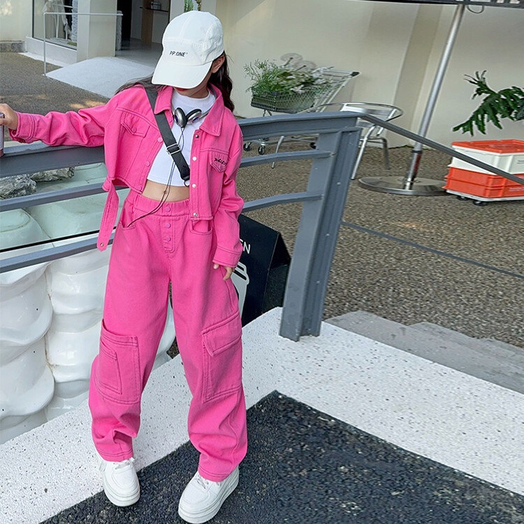 도파민 용 과일 컬러 클로 바지 패션 세트 소녀 가을 달콤한 쿨 스파이스 소녀 고급 데님 투피스 세트스토어 가기