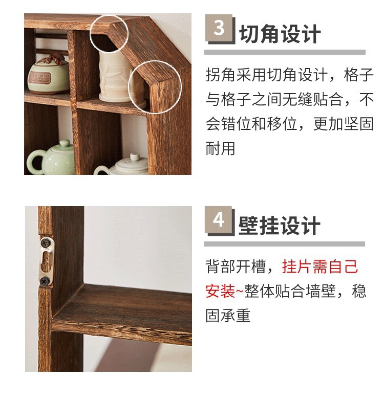 솔리드 우드 듀오 바오 파빌리온 티 컵 선반 주전자 차 세트 저장 벽 걸이 디스플레이 랙 중국 스타일 빈티지 스토리지 선반