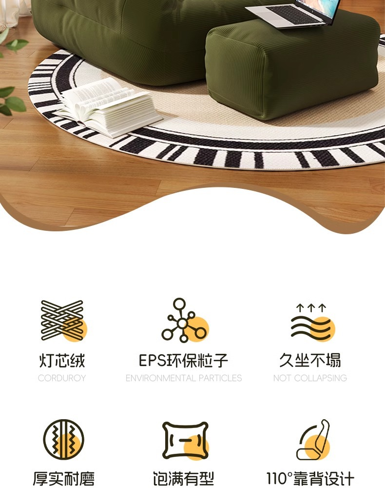 • Wowo+페달—짙은 녹색—완전 충전재 [피부 친화적인 코듀로이]
