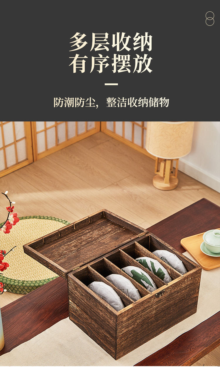 중국 단단한 나무 차 케이크 저장 상자 Pu'er 차 상자 차 트레이 서랍 유형 다층 흑백 차 케이크 랙 작은 차 캐비닛스토어 가기
