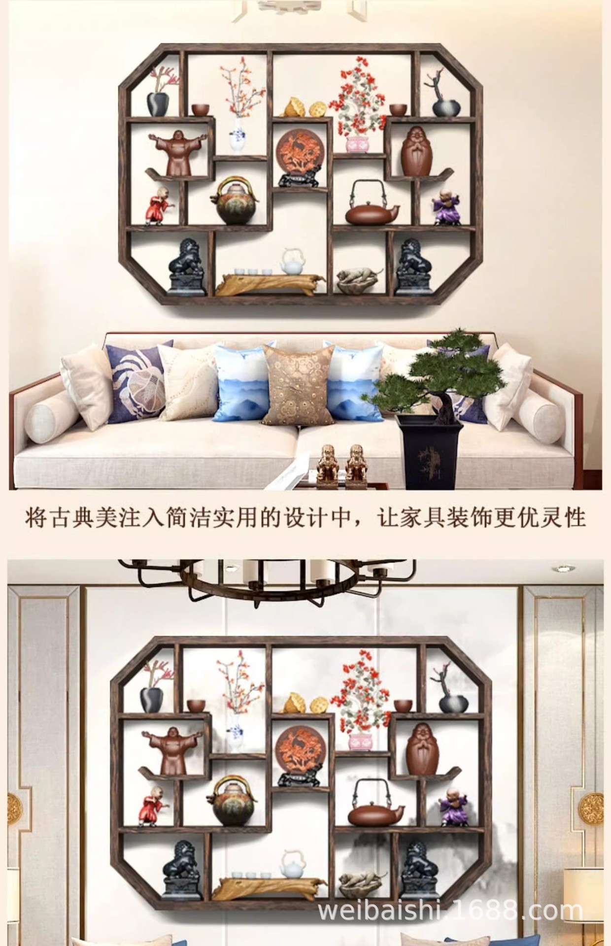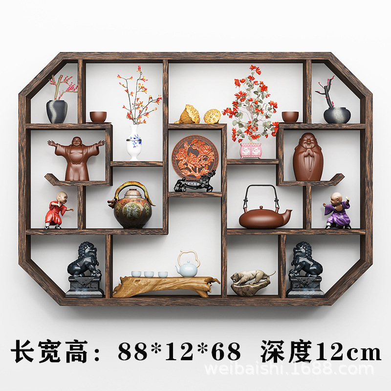 스토리지 랙 파티션 Duobao Pavilion 격자 무늬 랙 장식품 간단한 티 랙 골동품 랙 솔리드 우드 중국 벽 장착 벽 장착