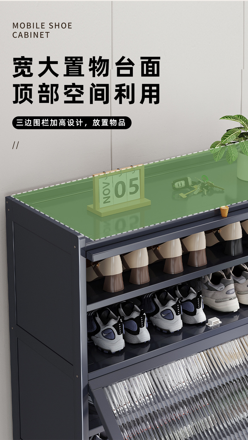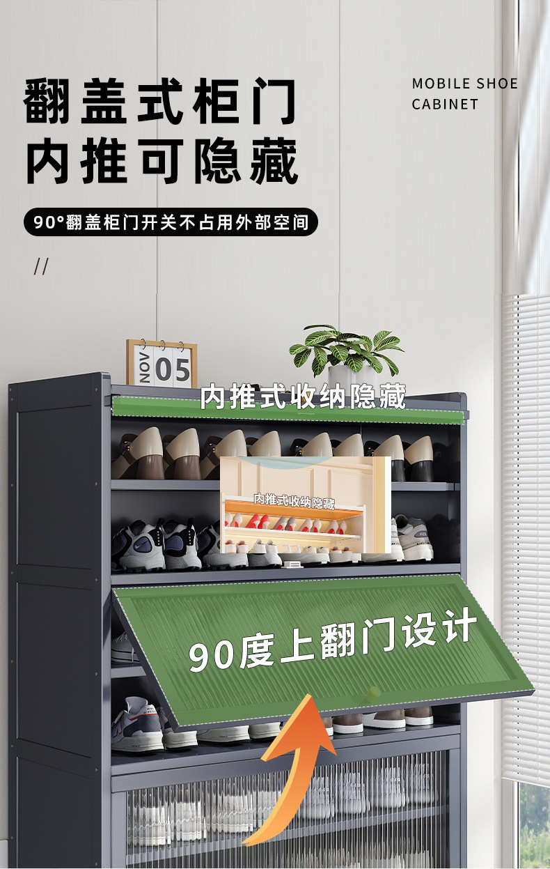신발 캐비닛 홈 문 웨이 대용량 다층 대형 새 스타일 2024 바퀴가 달린 폭발 이동식 복도 방진 신발 랙