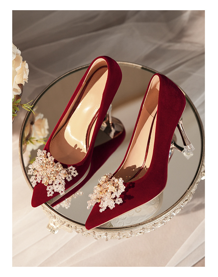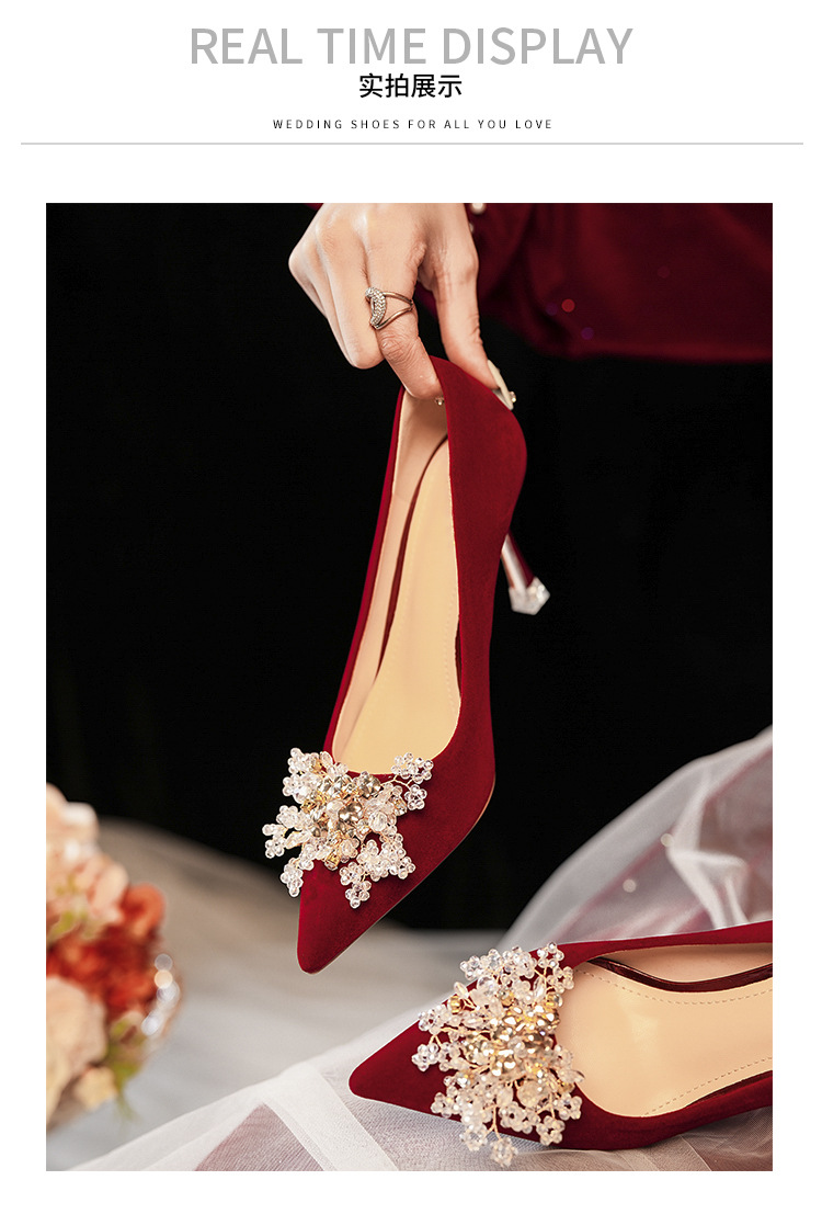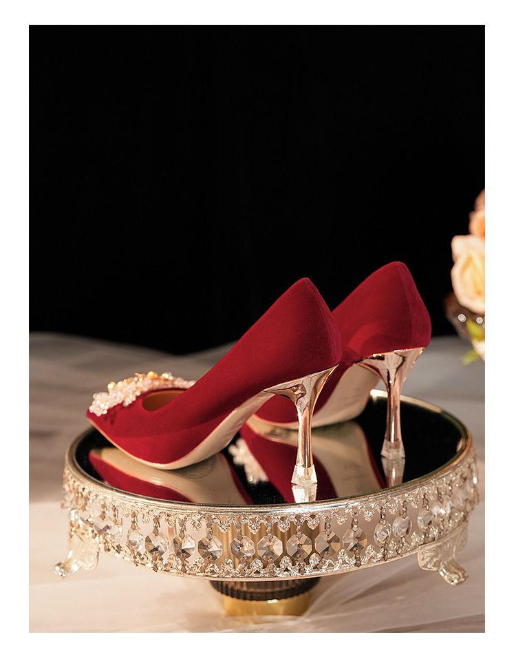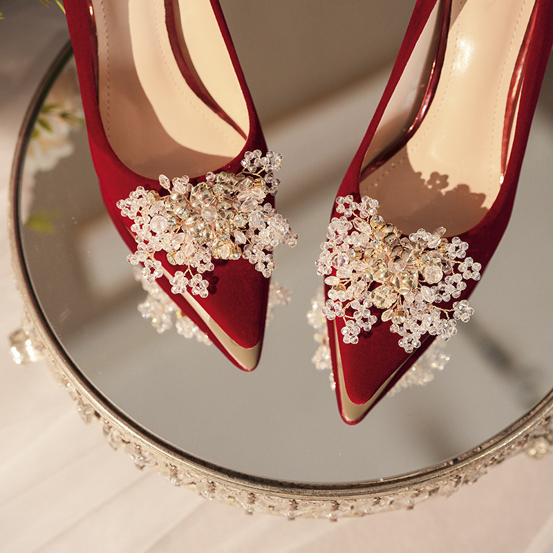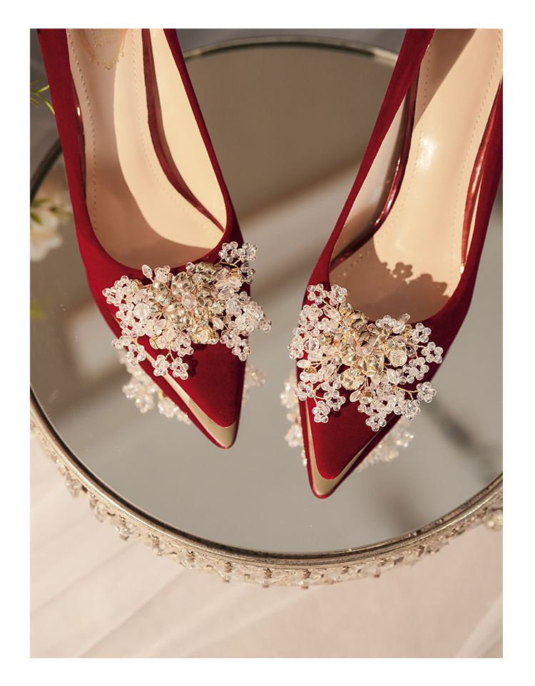 C888-10 중국 스타일 Xiuhe 원피스 신부 신발 여성 레드 원피스 와인 컵 힐 하이힐 웨딩 신발스토어 가기