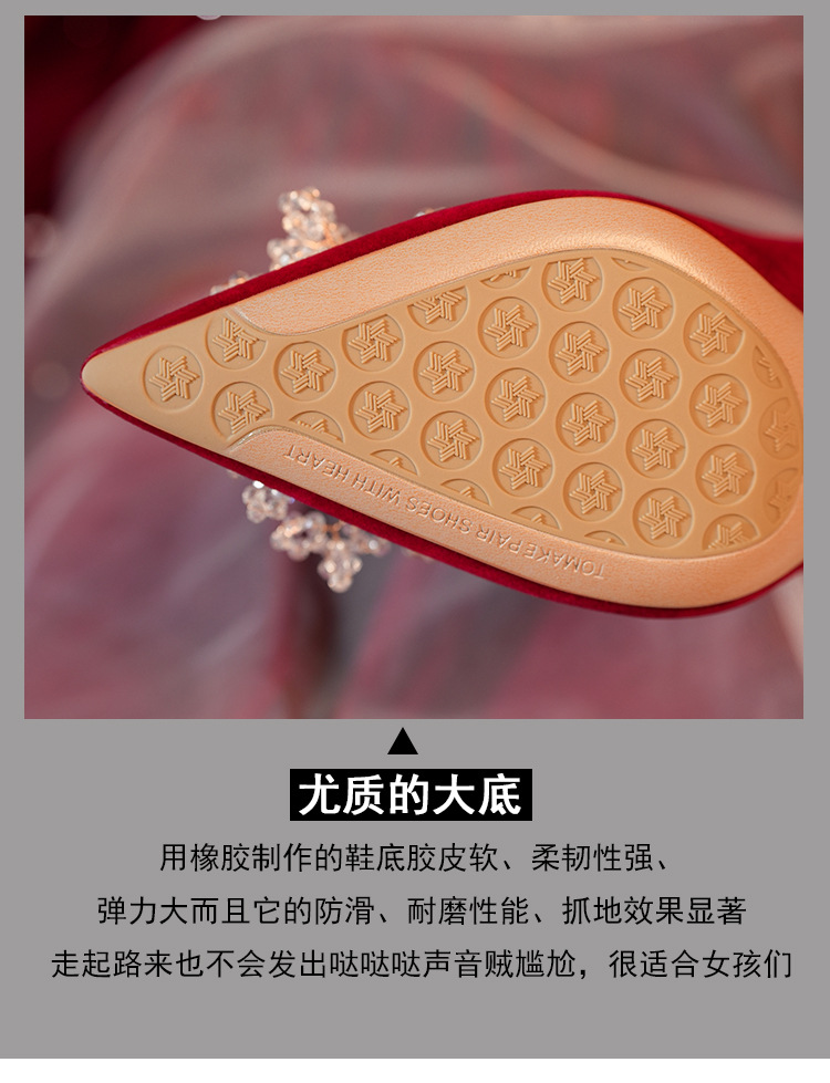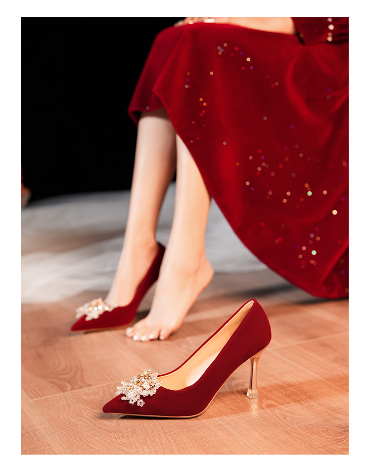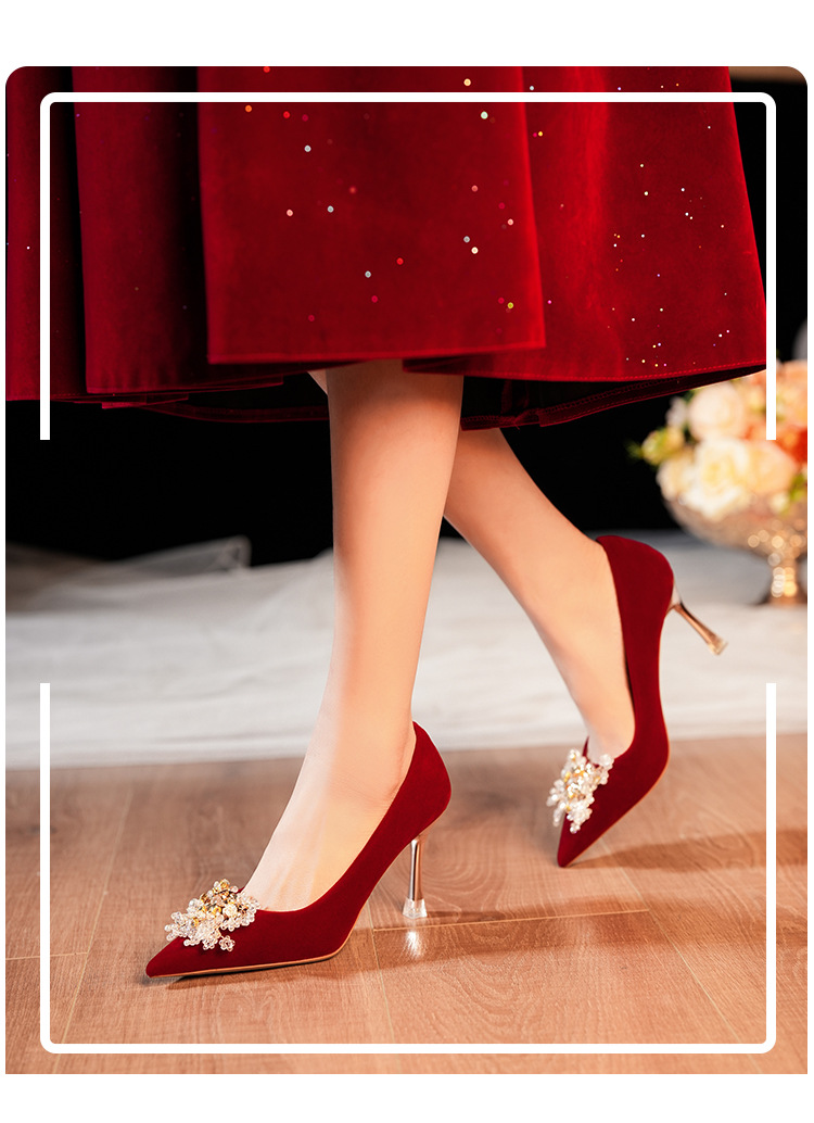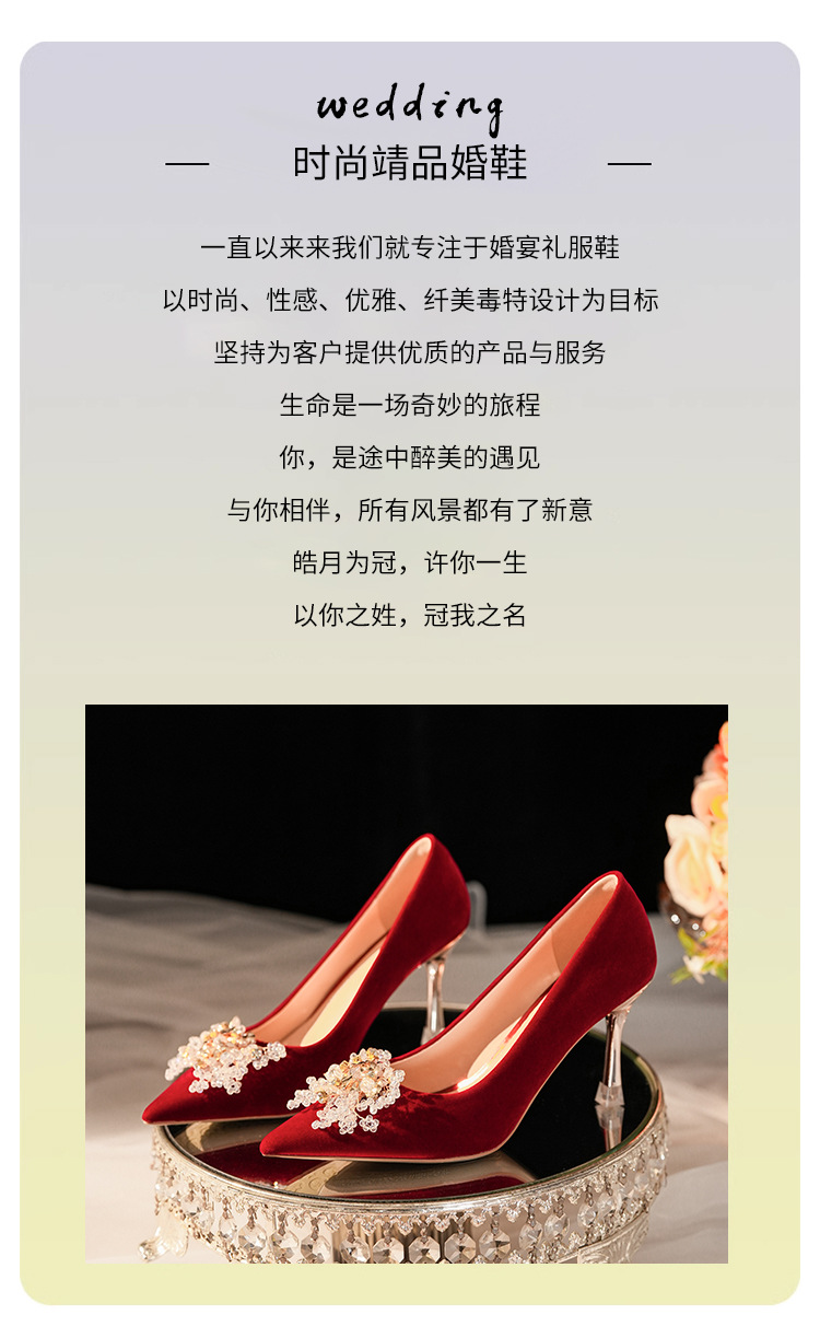C888-10 중국 스타일 Xiuhe 원피스 신부 신발 여성 레드 원피스 와인 컵 힐 하이힐 웨딩 신발스토어 가기
