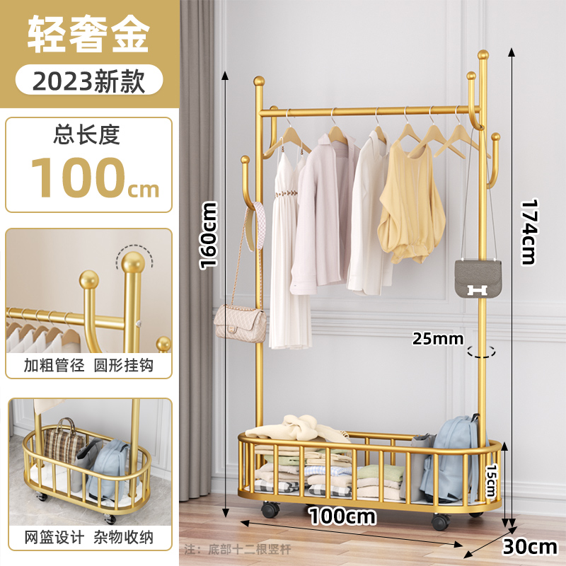 • (폭발판매❤슈퍼마켓과 동일한 스타일) 라이트 럭셔리 골드 100cm [4 후크 메쉬 바스켓 - 범용 휠 + 두꺼운 25 튜브]