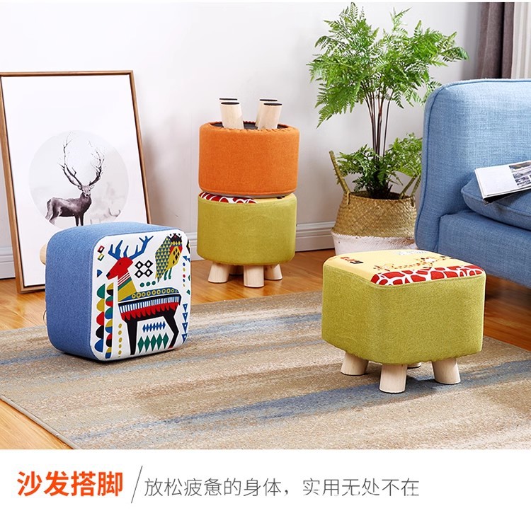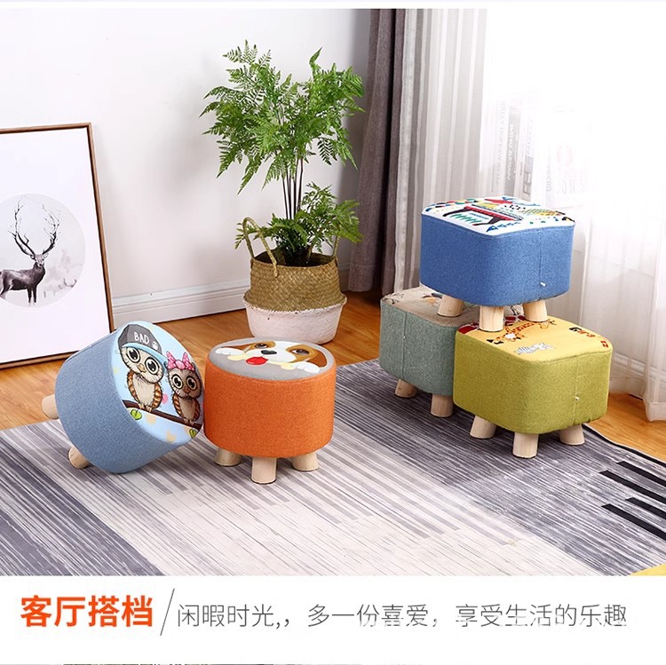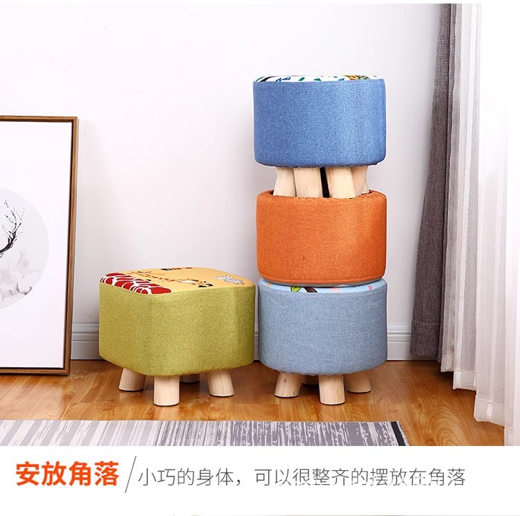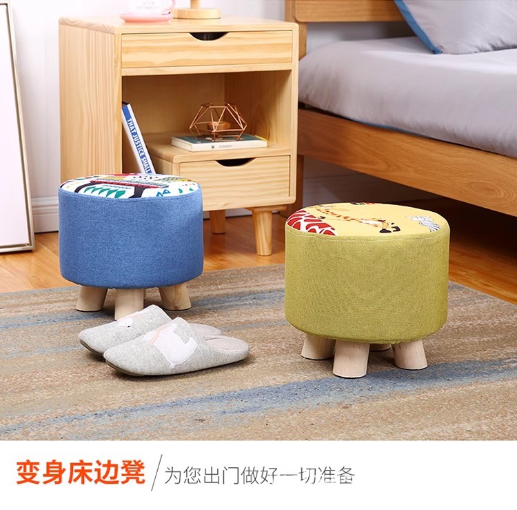 단단한 나무 낮은 의자 거실 커피 테이블 소파 의자 유행 작은 의자 둥근 의자 원단 의자 신발 변경 의자 작은 의자스토어 가기