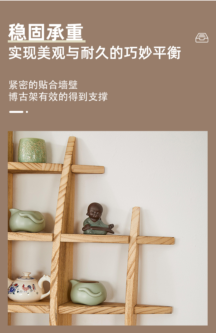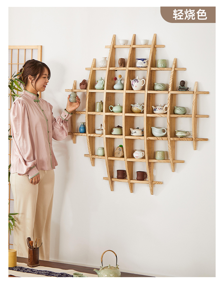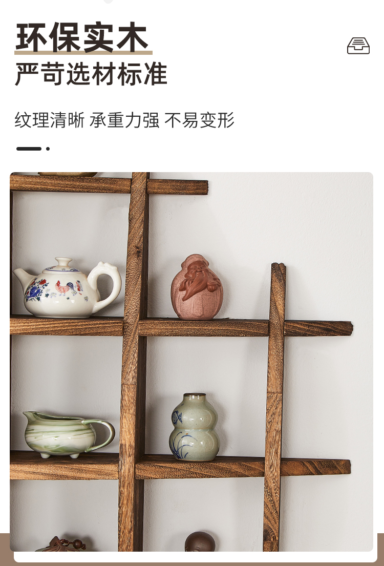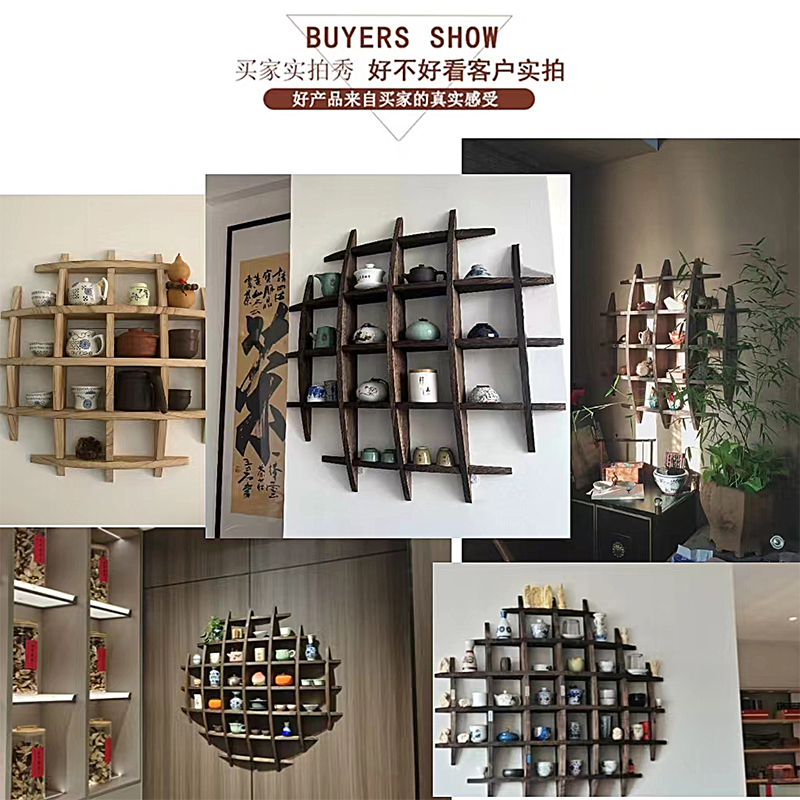 벽에 장착 된 Bogu 랙 티 룸 배경 벽 Duobao Pavilion 벽걸이 형 스토리지 랙 주전자 걸이 랙 티 컵 티 세트 디스플레이스토어 가기