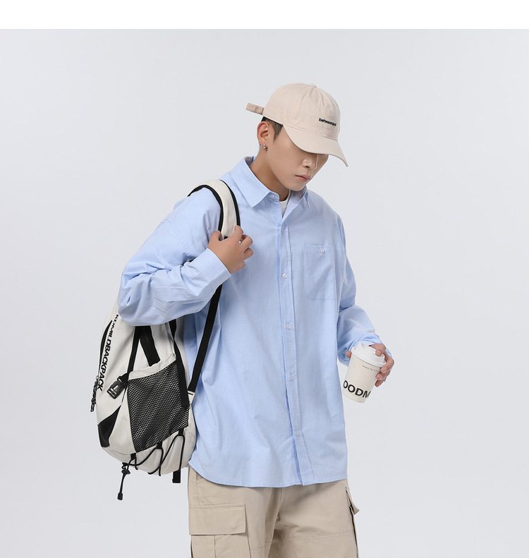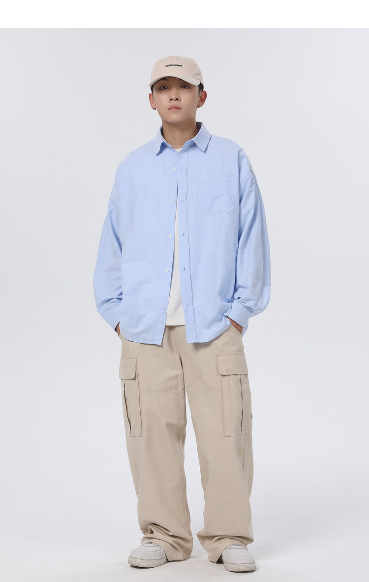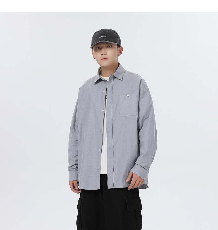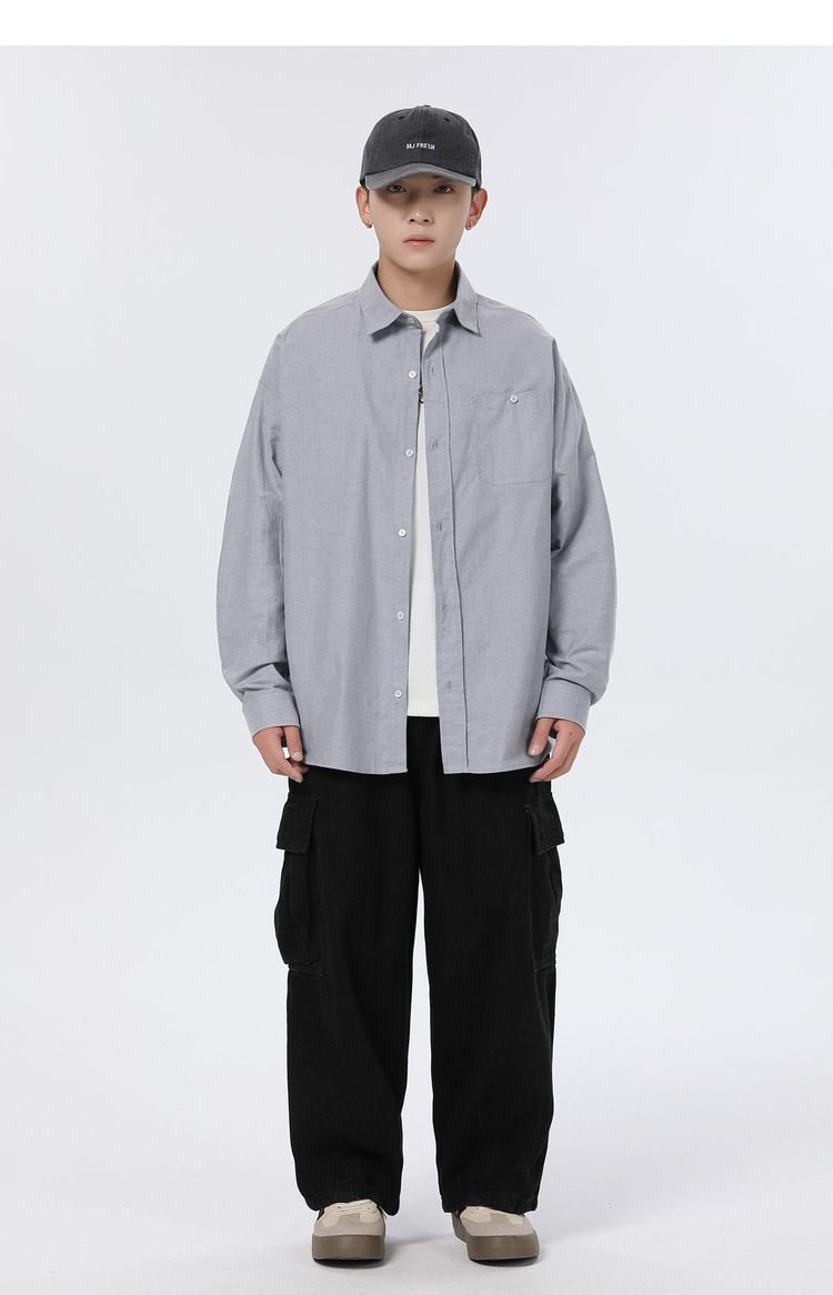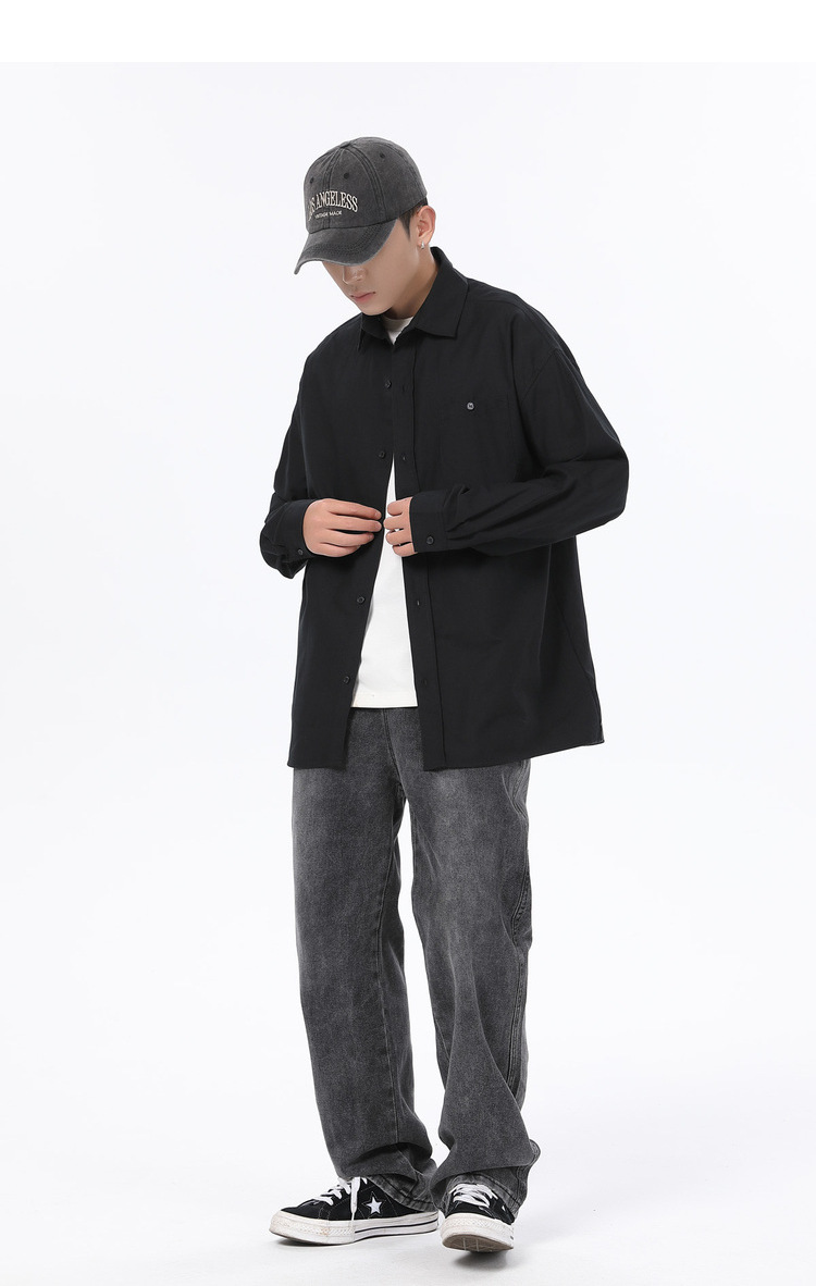 Jianheng 일본식 레트로 간단한 긴팔 셔츠 재킷 남자의 봄과 가을 느슨한 플러스 사이즈 셔츠 캐주얼 트렌디 여성스토어 가기