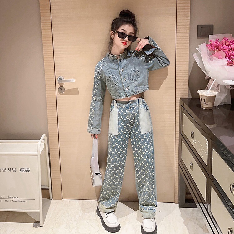 소녀 데님 코트 봄과 가을 2025 새로운 어린이 유행 가을 탑 중 큰 어린이 캐주얼 짧은 카디건스토어 가기