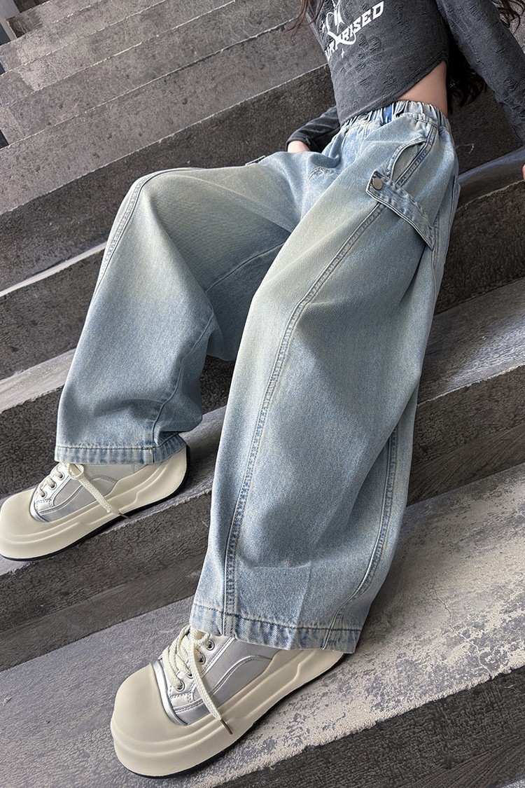 소녀 청바지 봄과 가을 2025 새로운 큰 어린이 봄 서양식 넓은 다리 바지 어린이 유행스토어 가기